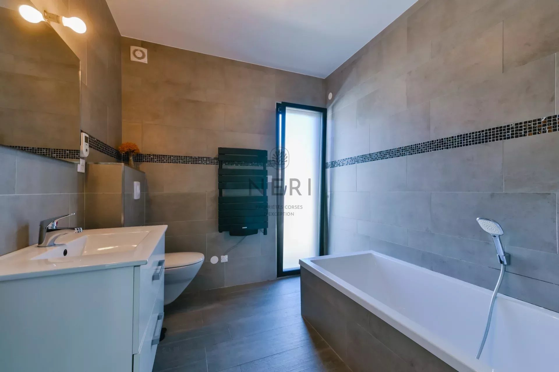 Récemment construite, cette résidence s'étend sur 225 m², composée d'une villa principale de type 5 comprenant 3 chambres et une suite parentale, ainsi que d'un appartement T2 indépendant de 60 m². Une piscine et un garage en sous-sol complètent ce bien.