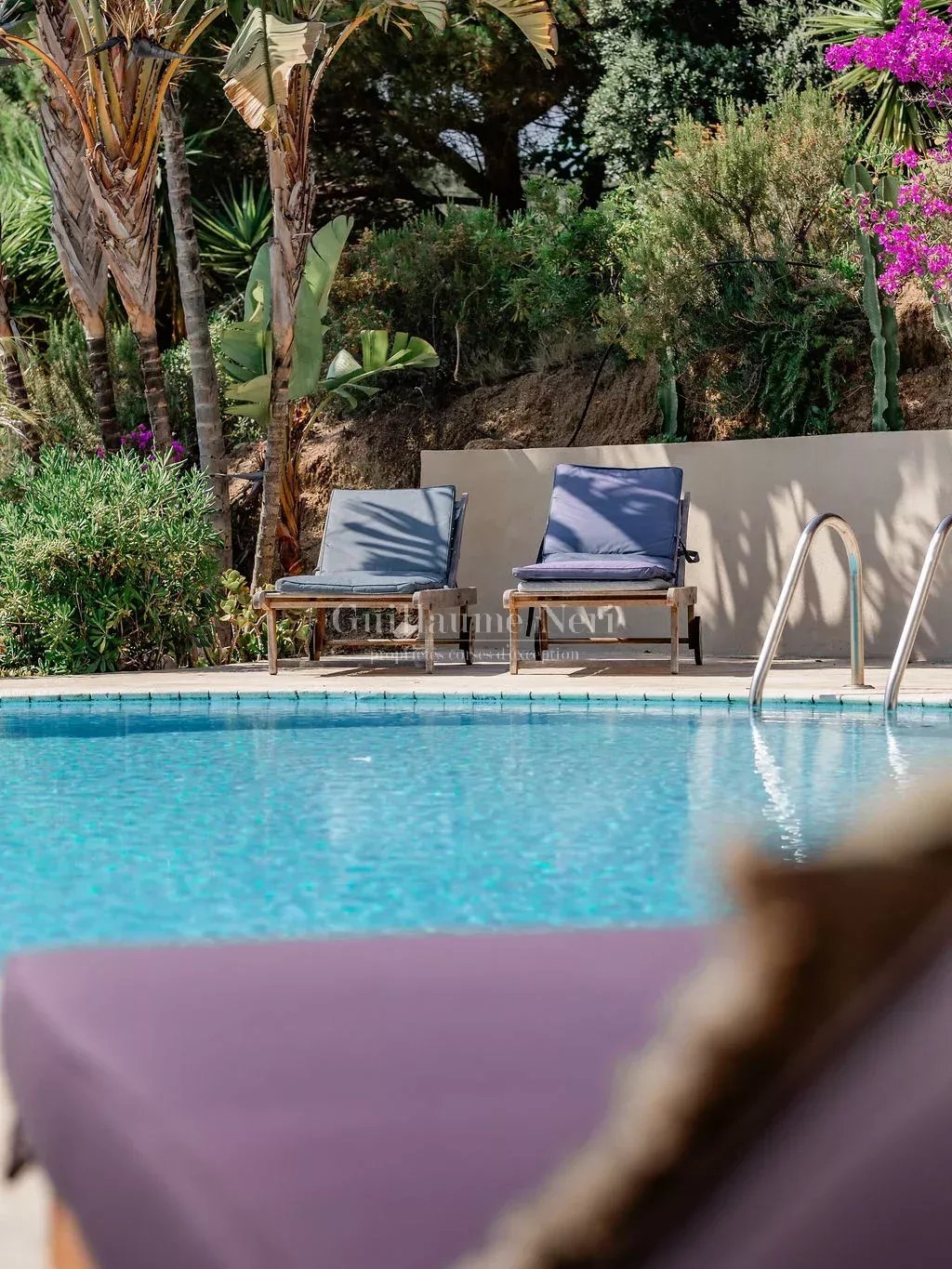 À l’extérieur, une terrasse avec piscine, jacuzzi et vue sur la mer. Le tout est complété par un jardin paysagé mêlant essences tropicales et végétation endémique.