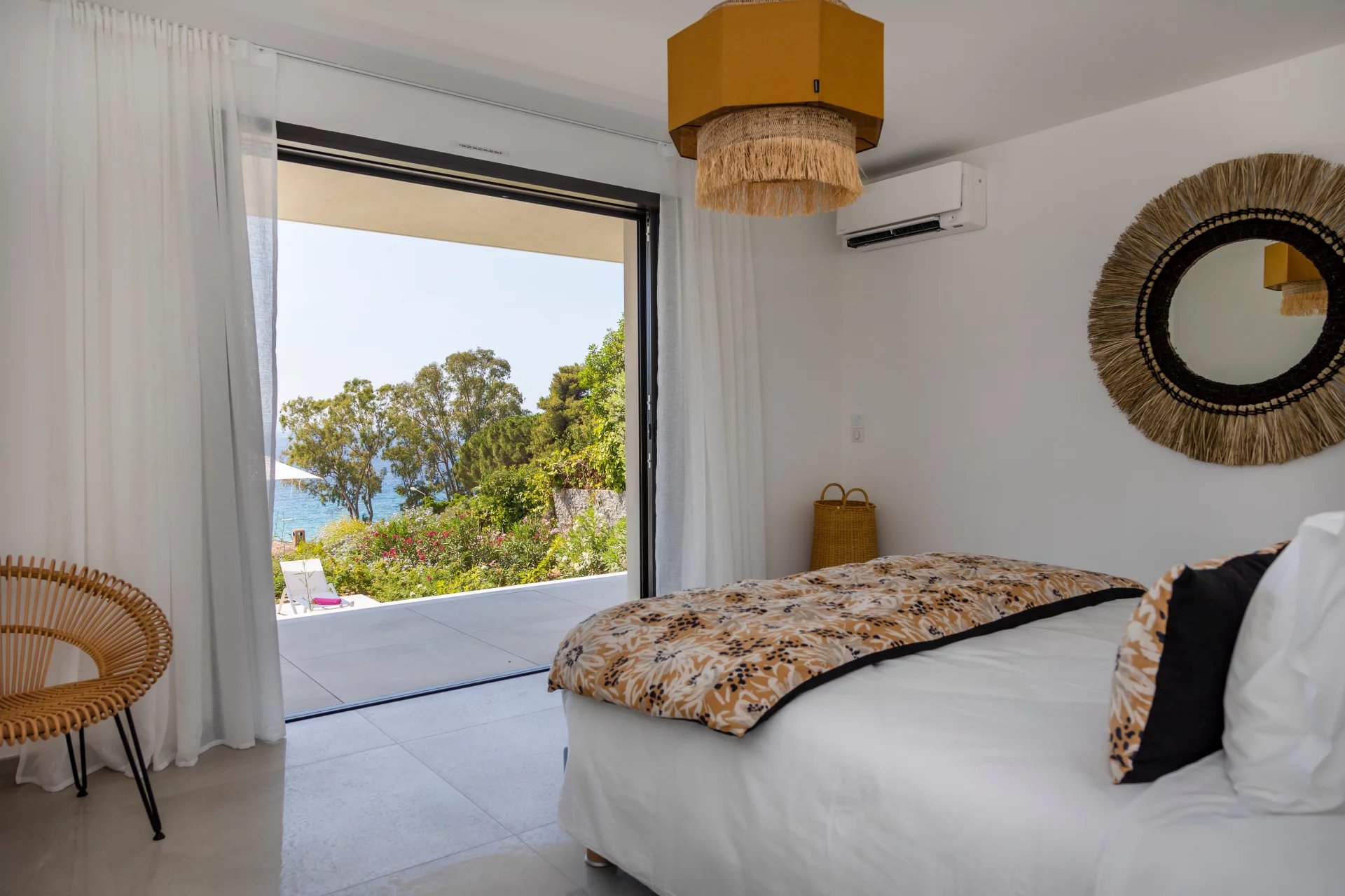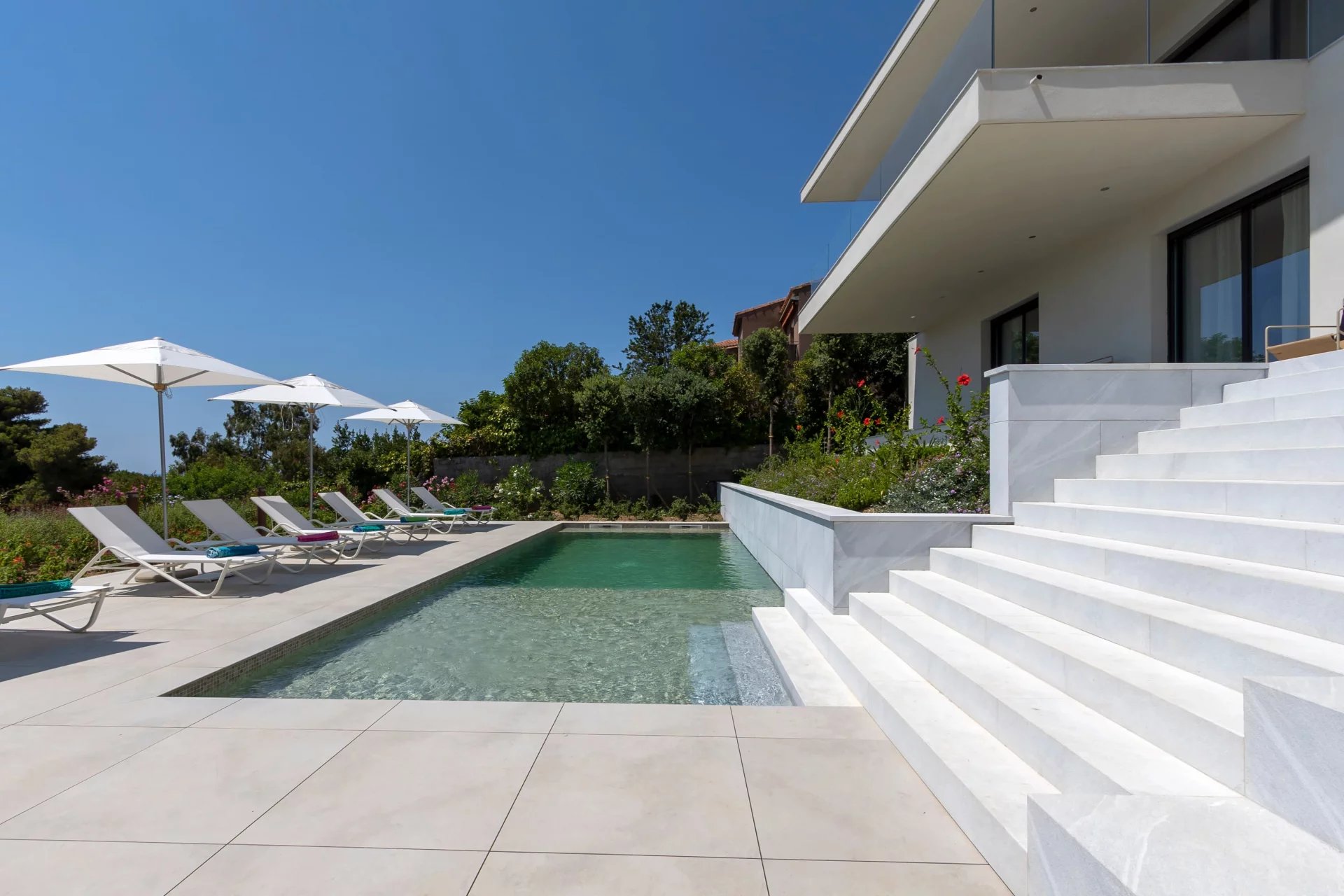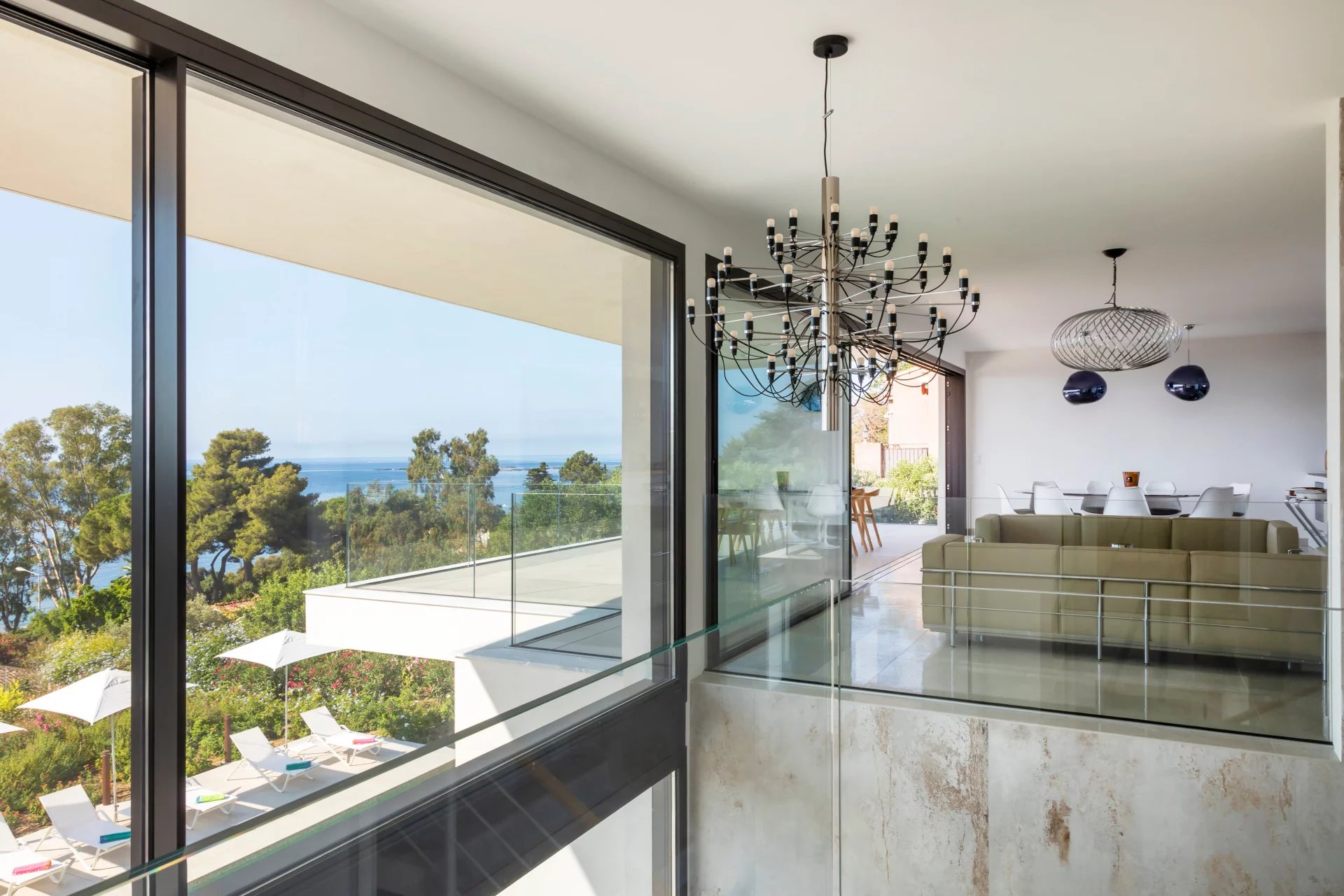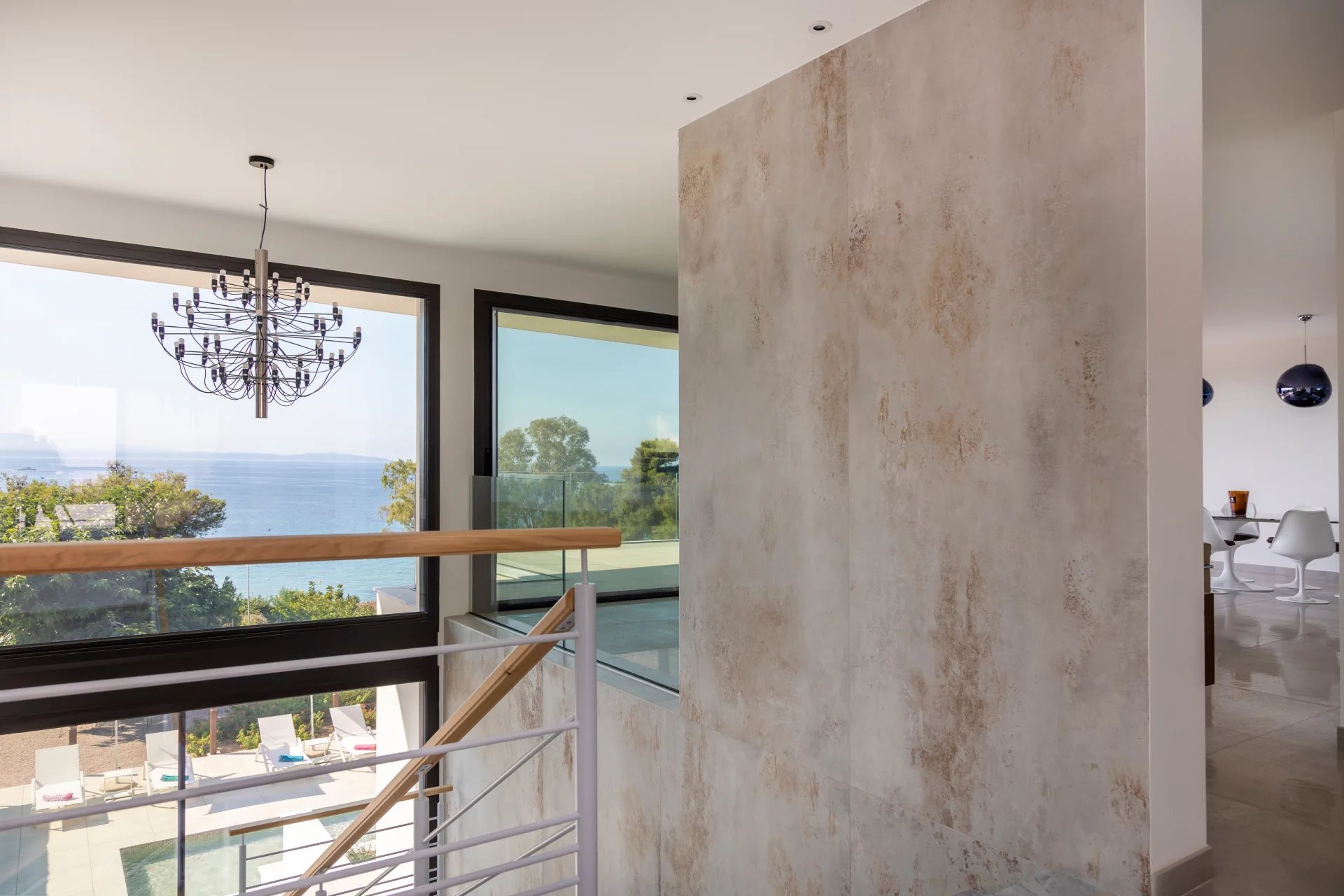 La villa se compose de 4 chambres en suite, chacune avec salle d'eau et commodités privatives pour un confort optimal. Au premier étage, vous trouverez une grande pièce à vivre lumineuse avec un espace repas, une cuisine ouverte entièrement équipée et un salon TV. Une chambre est également située à cet étage. Un majestueux escalier en marbre de Carrare vous conduit au rez-de-chaussée où se trouvent trois autres chambres avec vue sur le jardin et la mer.