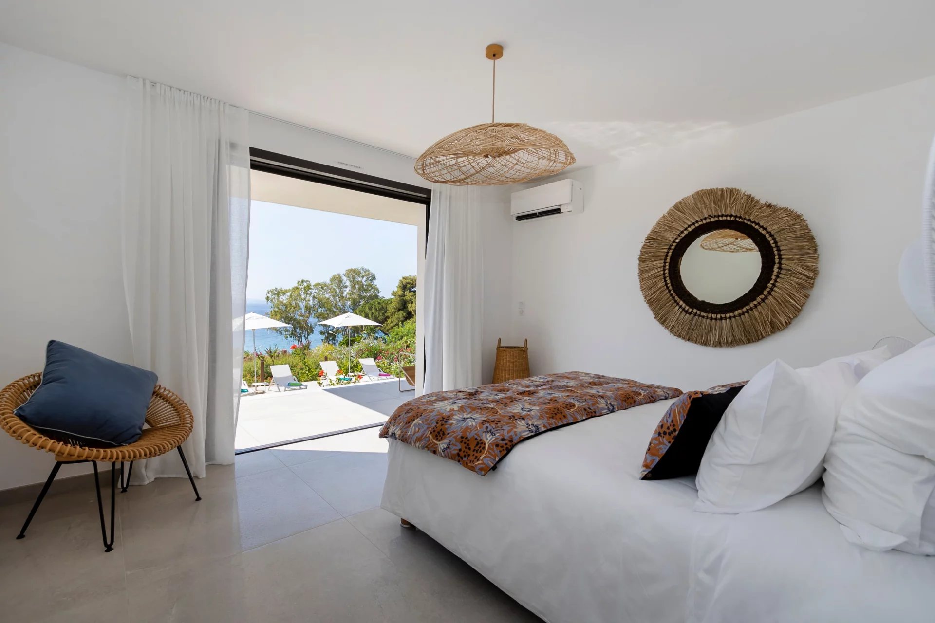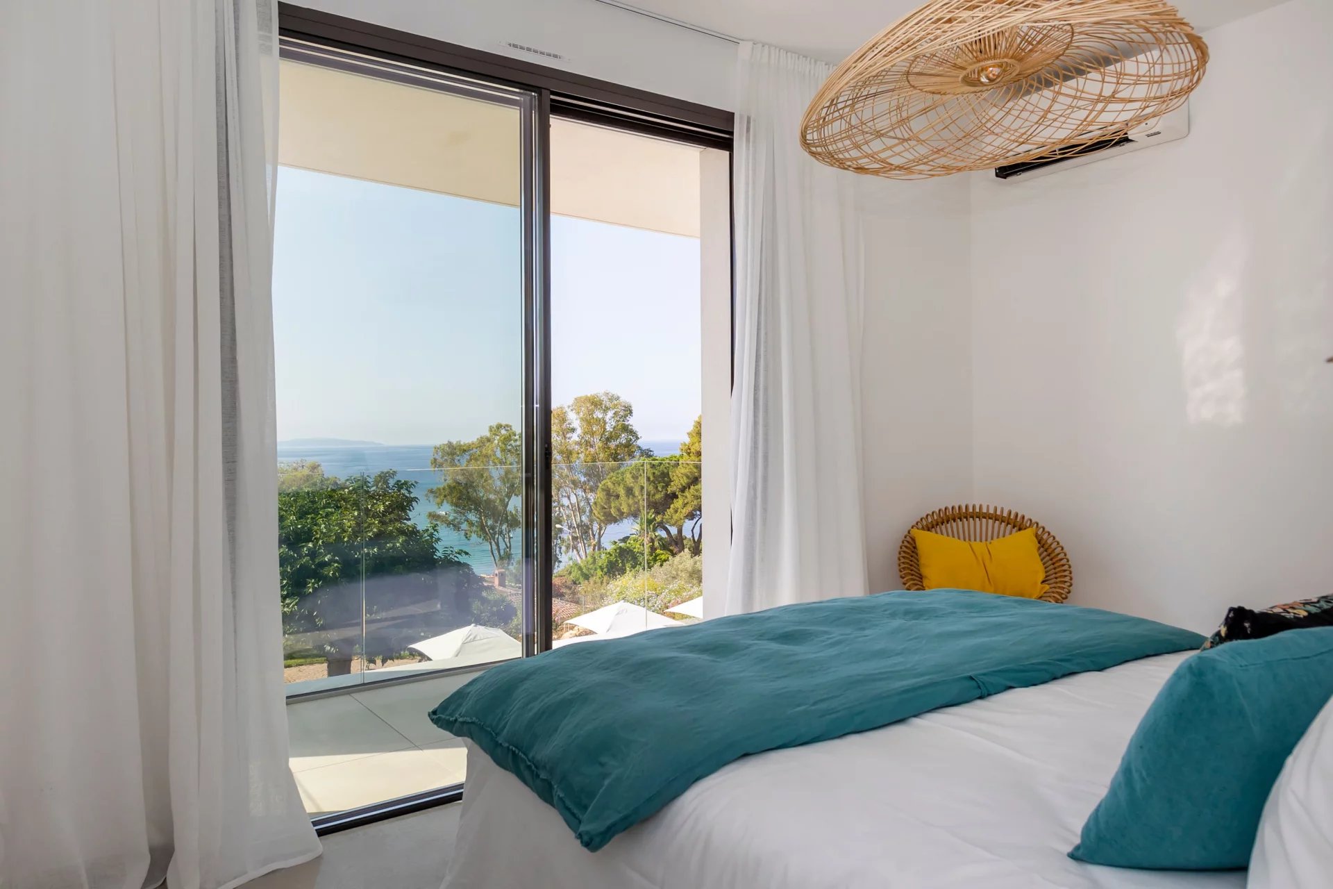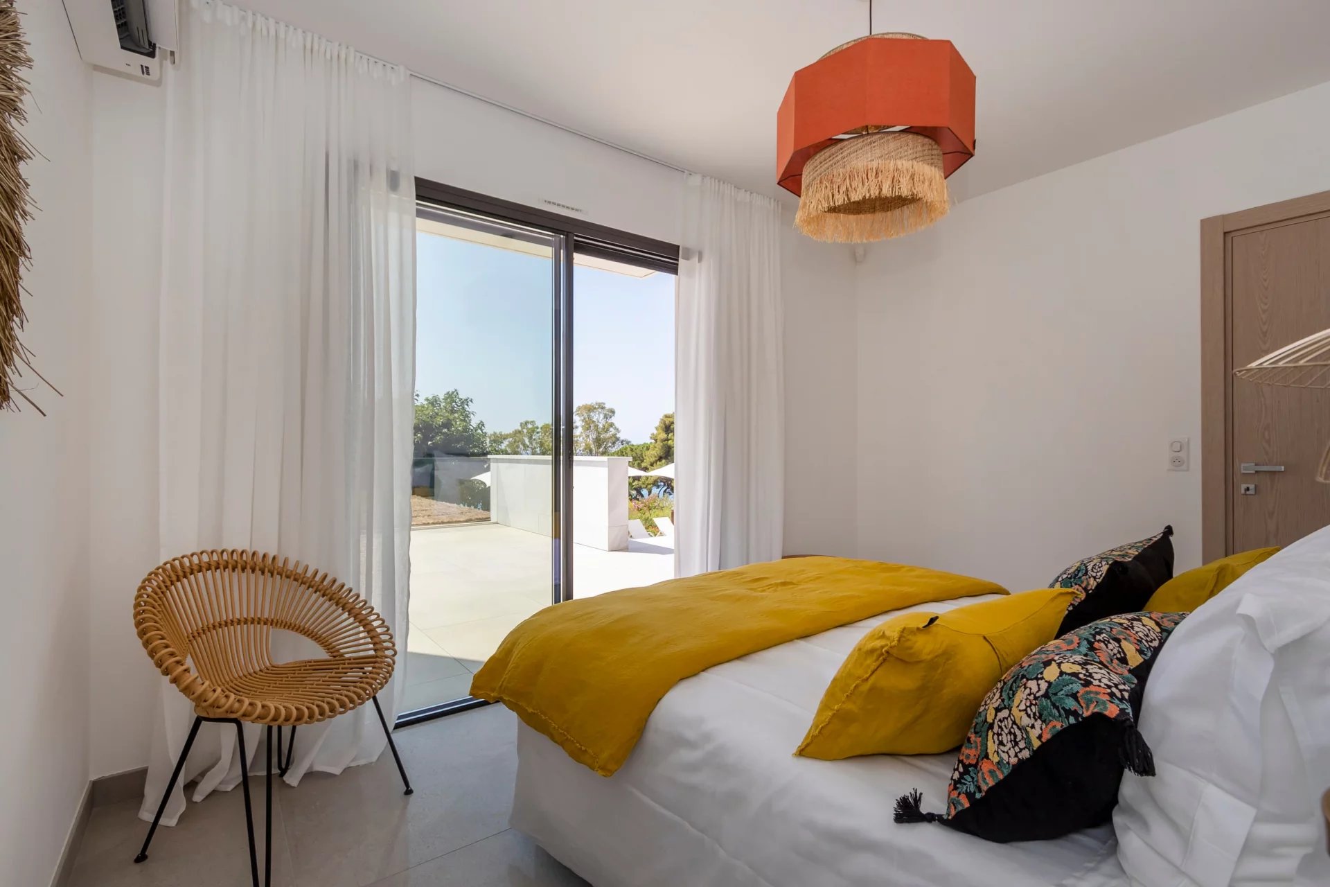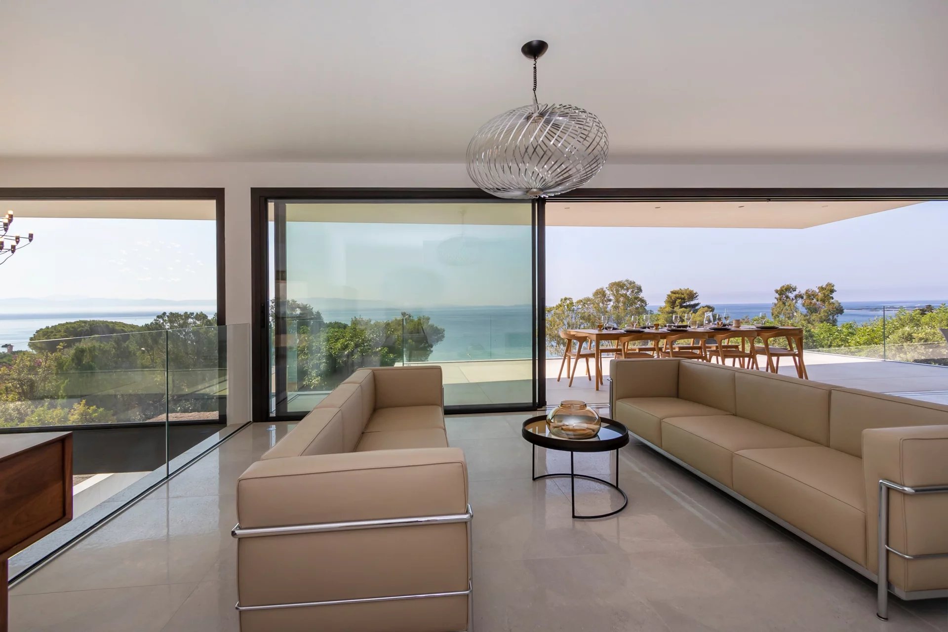 La villa se compose de 4 chambres en suite, chacune avec salle d'eau et commodités privatives pour un confort optimal. Au premier étage, vous trouverez une grande pièce à vivre lumineuse avec un espace repas, une cuisine ouverte entièrement équipée et un salon TV. Une chambre est également située à cet étage. Un majestueux escalier en marbre de Carrare vous conduit au rez-de-chaussée où se trouvent trois autres chambres avec vue sur le jardin et la mer.