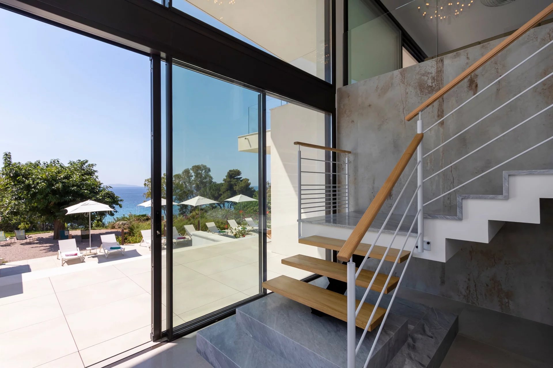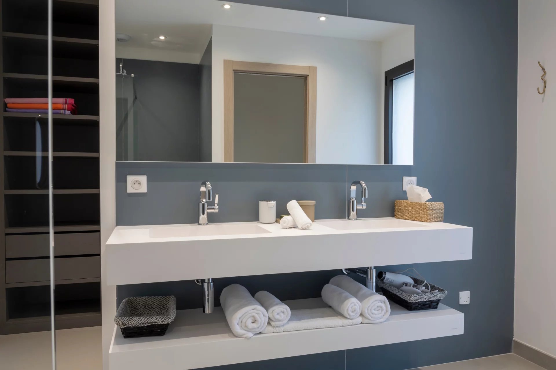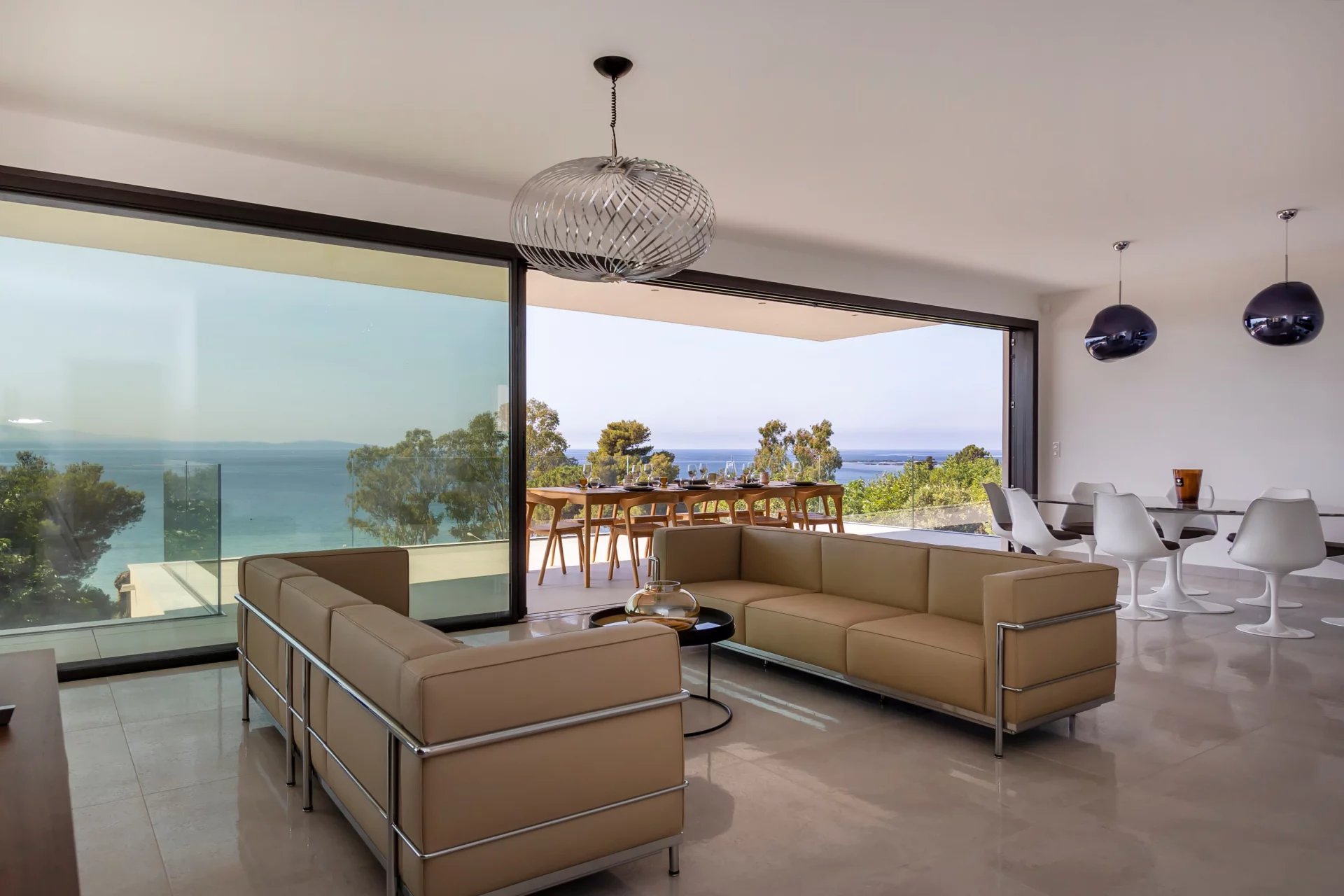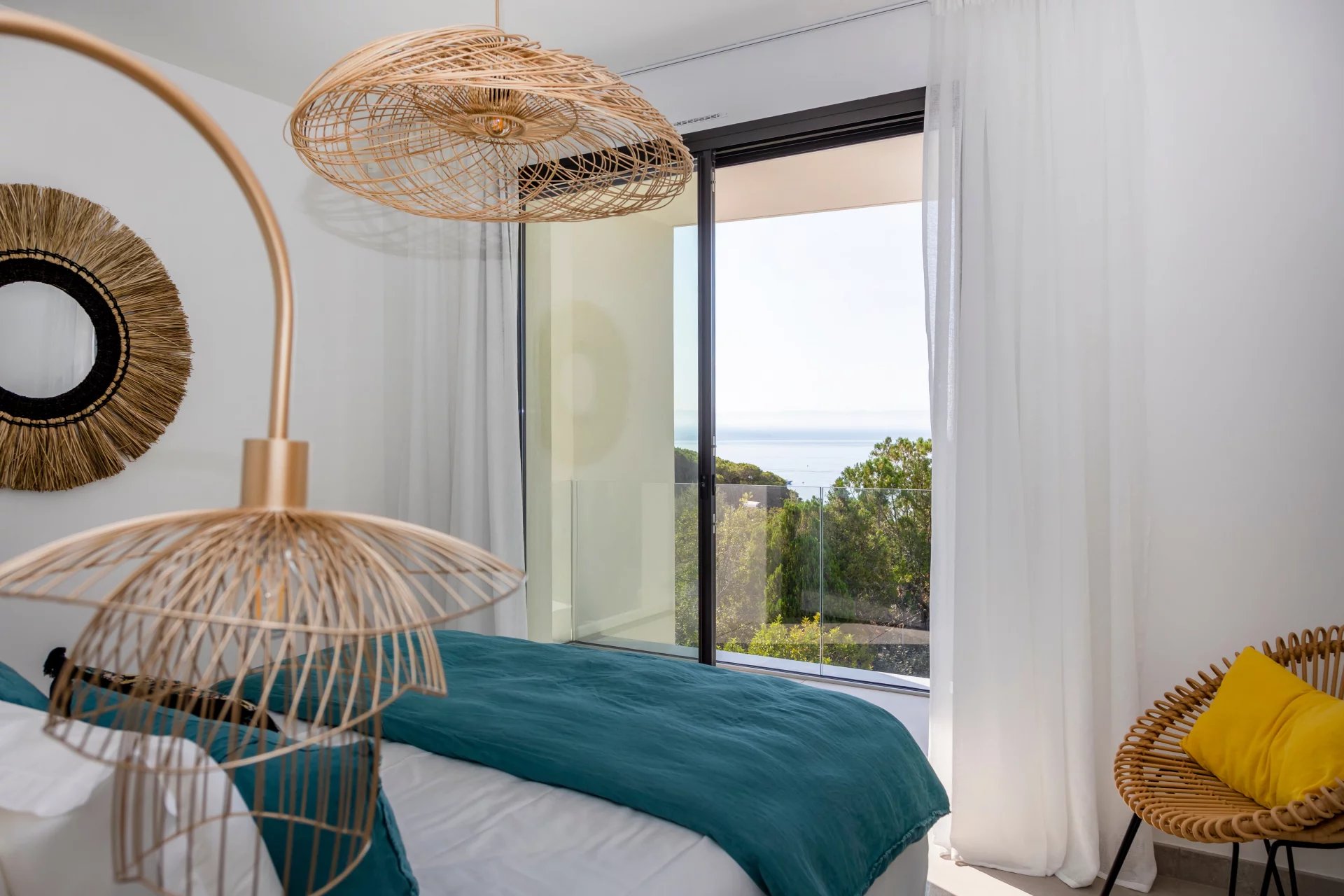 La villa se compose de 4 chambres en suite, chacune avec salle d'eau et commodités privatives pour un confort optimal. Au premier étage, vous trouverez une grande pièce à vivre lumineuse avec un espace repas, une cuisine ouverte entièrement équipée et un salon TV. Une chambre est également située à cet étage. Un majestueux escalier en marbre de Carrare vous conduit au rez-de-chaussée où se trouvent trois autres chambres avec vue sur le jardin et la mer.