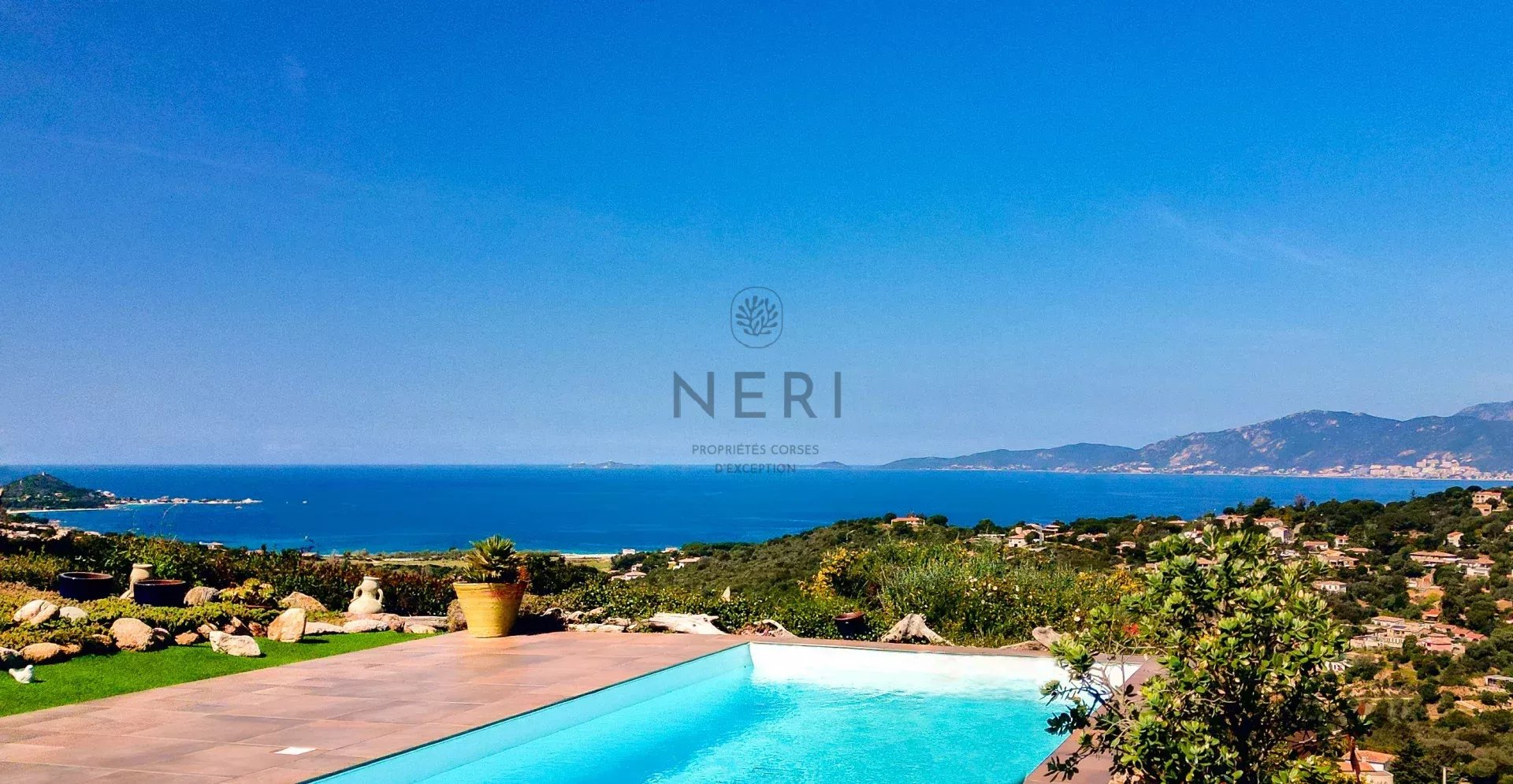 Située entre mer et montagnes, cette villa offre un cadre de vie agréable par sa tranquillité et sa vue panoramique sur le golfe d'Ajaccio et les montagnes.