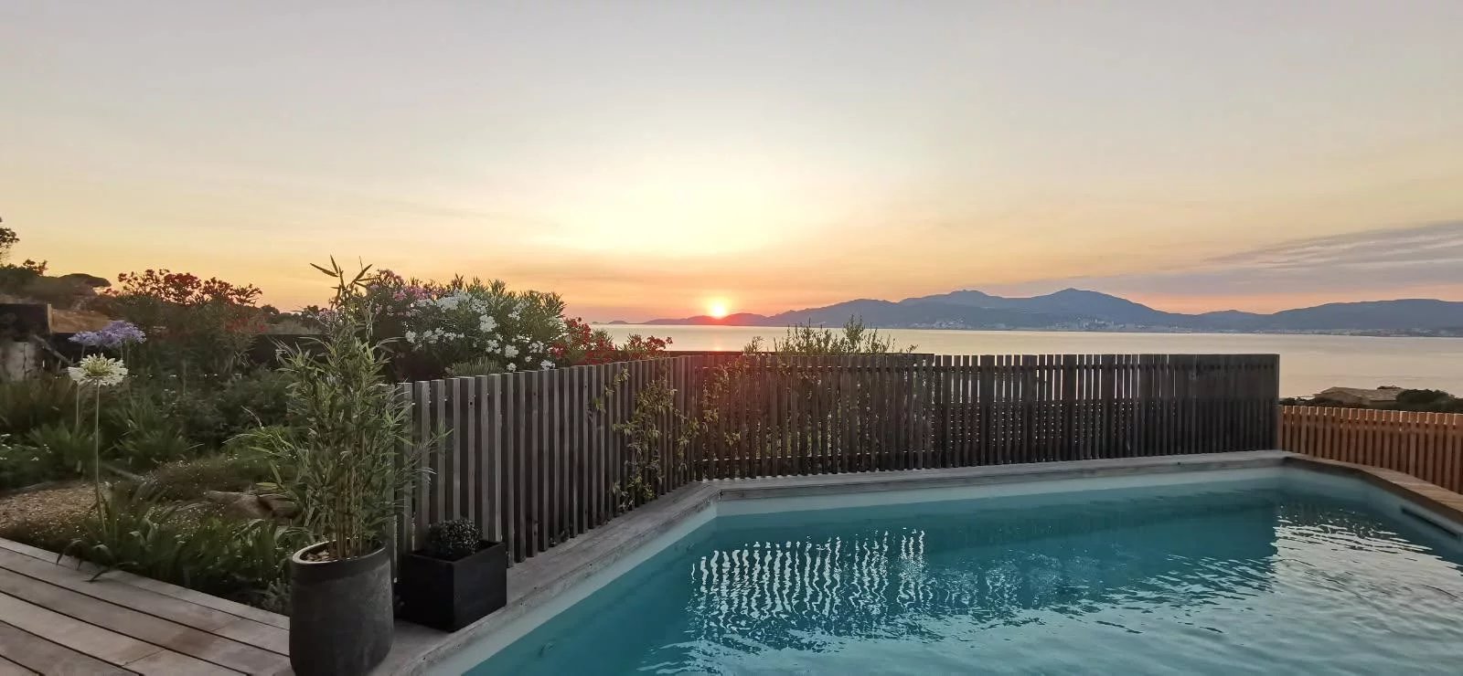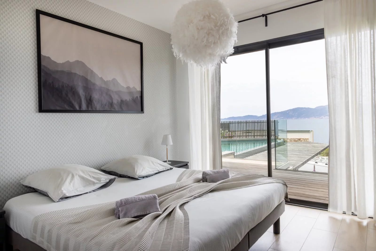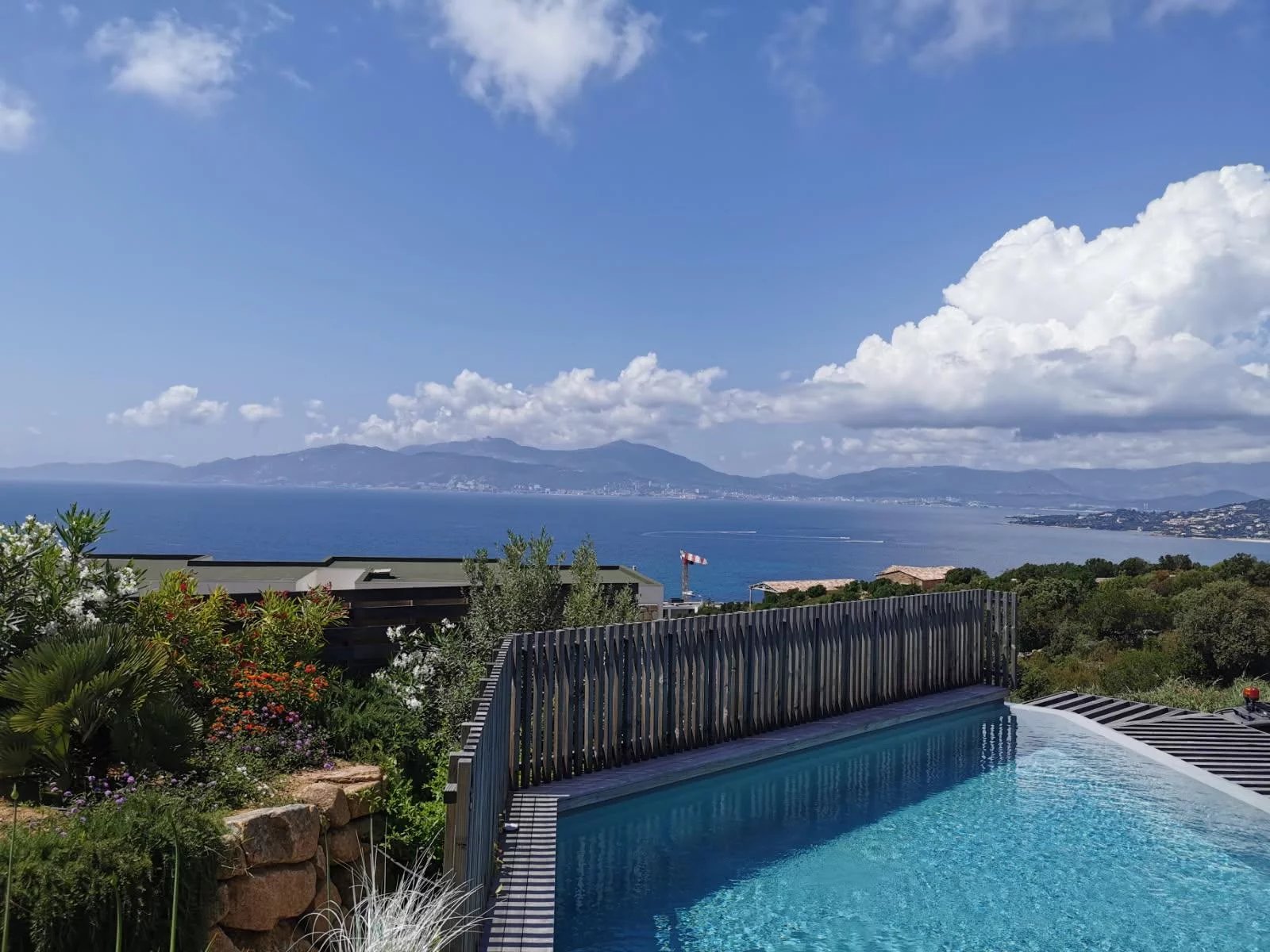 A l'extérieur une terrasse aménagée vous accueille avec un espace détente, des transats et une piscine à débordement, offrant une vue imprenable sur la mer.