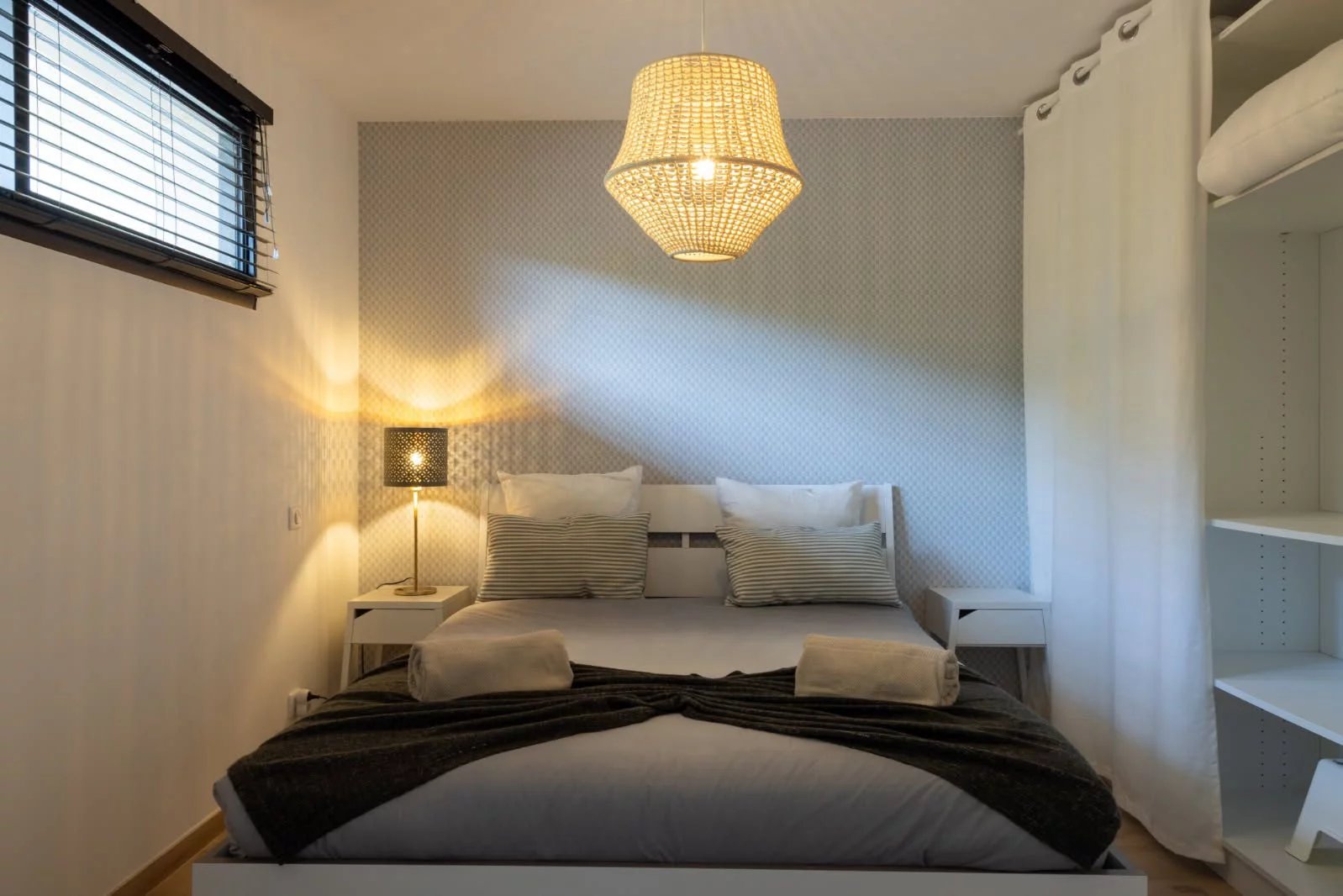 Un escalier intérieur dessert un appartement indépendant au rez-de-jardin, parfait pour accueillir des amis ou de la famille. Ce dernier dispose d’un coin cuisine, de deux chambres dont une avec vue mer, ainsi qu'une salle d'eau.