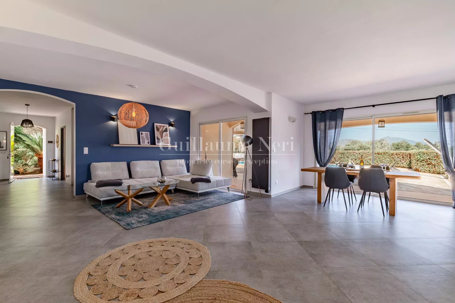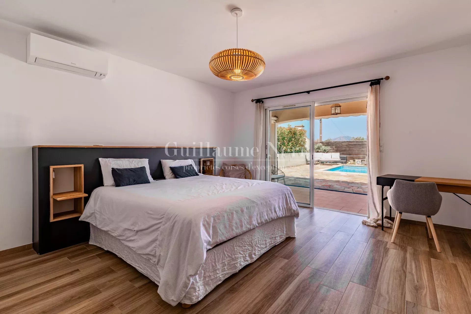 La villa principale se compose de 3 chambres, d’un vaste séjour lumineux, d’une cuisine entièrement équipée, et s’ouvre sur une spacieuse terrasse avec piscine privée et douche extérieure.