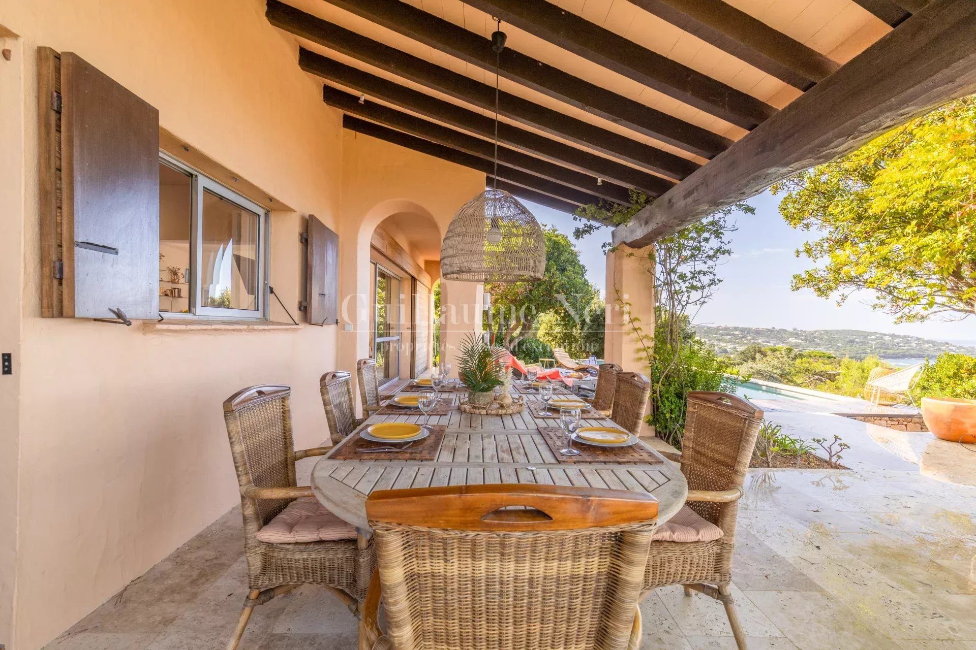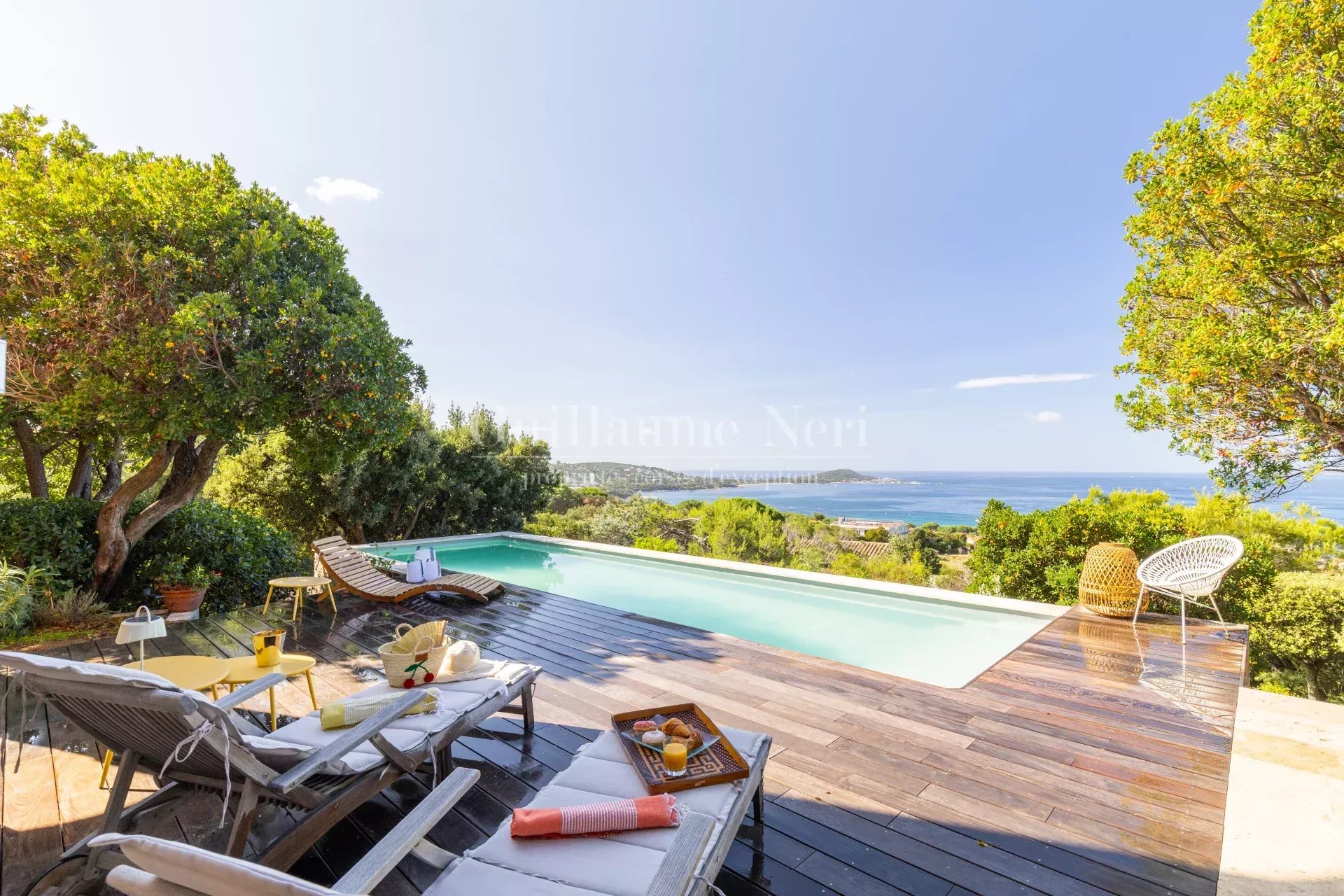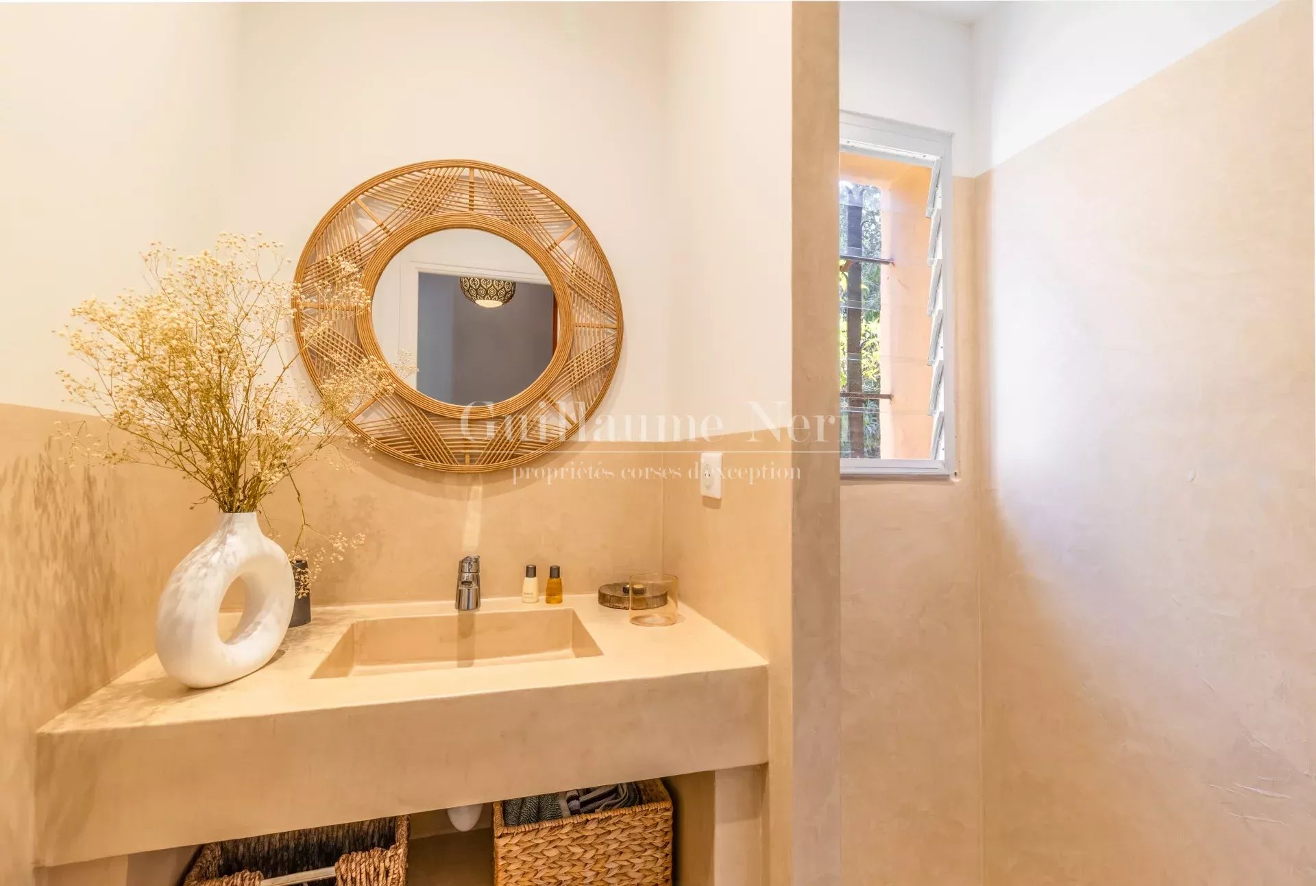 Cette villa chaleureuse et accueillante dispose d'une piscine offrant une vue panoramique sur le Golfe d’Ajaccio, ainsi qu'une grande terrasse joliment aménagée et décorée.