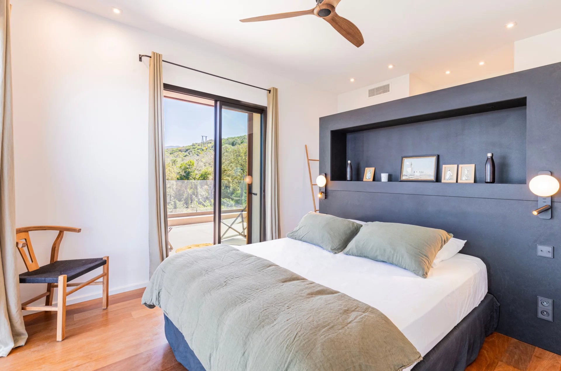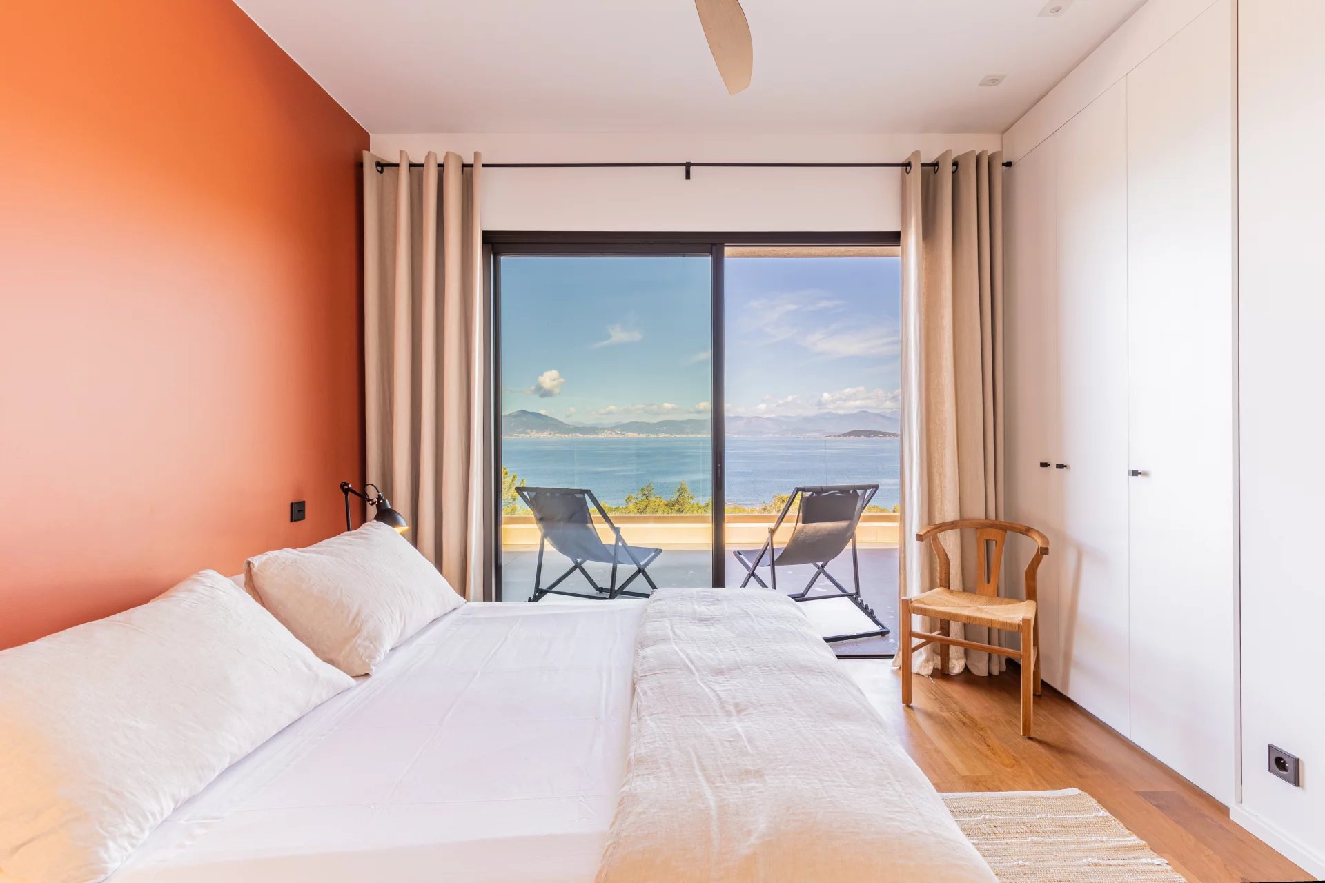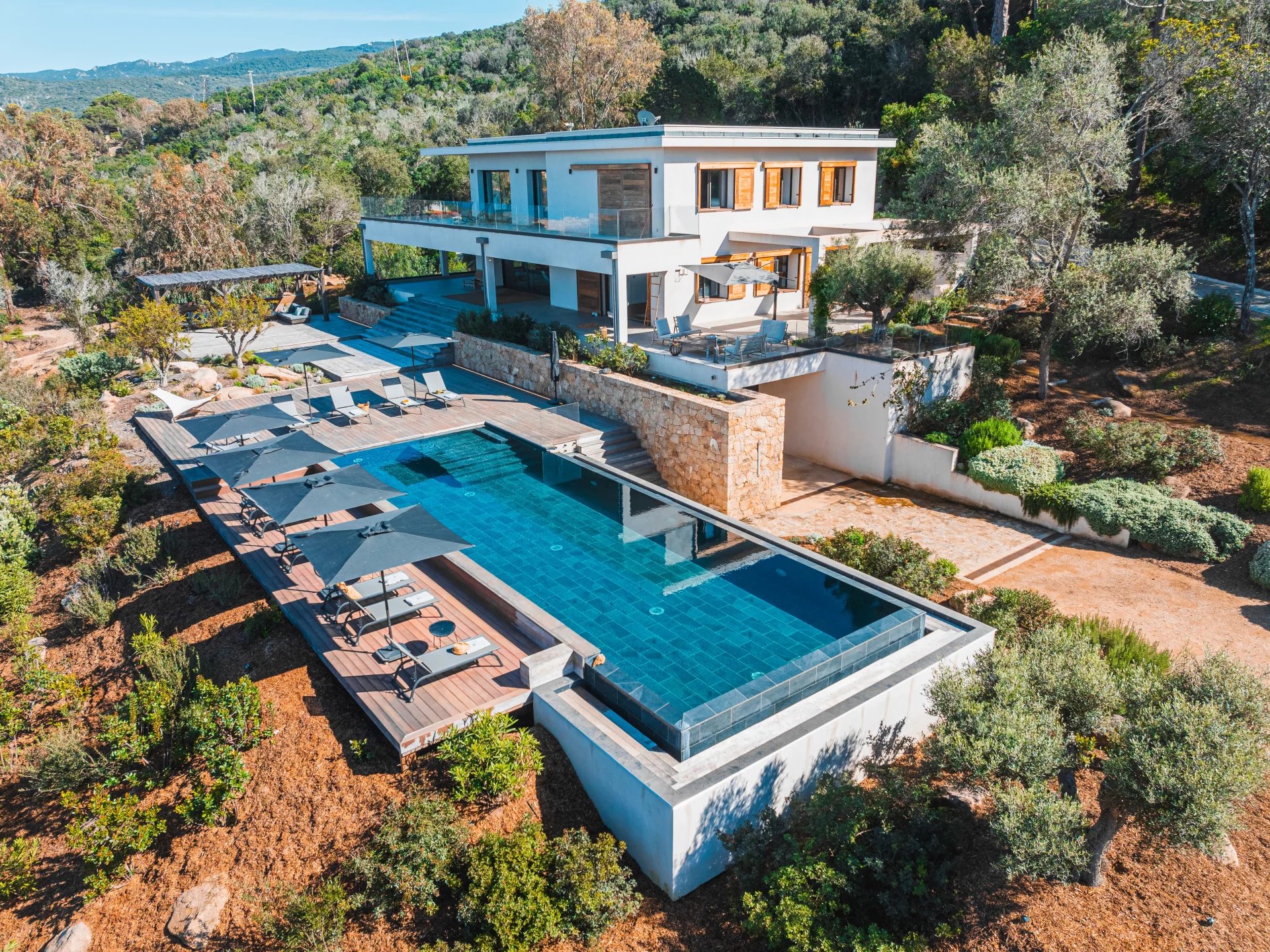 Cette villa d'exception, décorée avec élégance, est située dans un cadre naturel unique avec un accès direct à une crique privée et une vue imprenable sur le Golfe d'Ajaccio. Son salon lumineux avec cuisine ouverte mène à une vaste terrasse couverte, idéale pour des moments de détente.