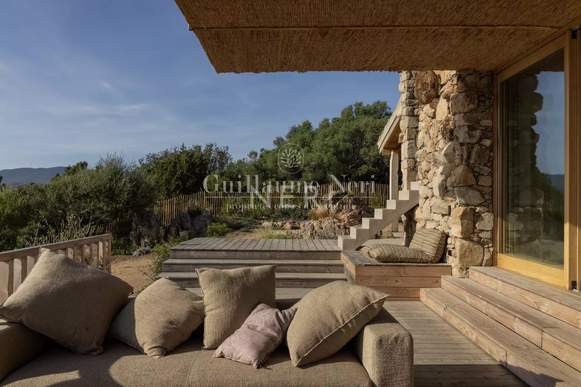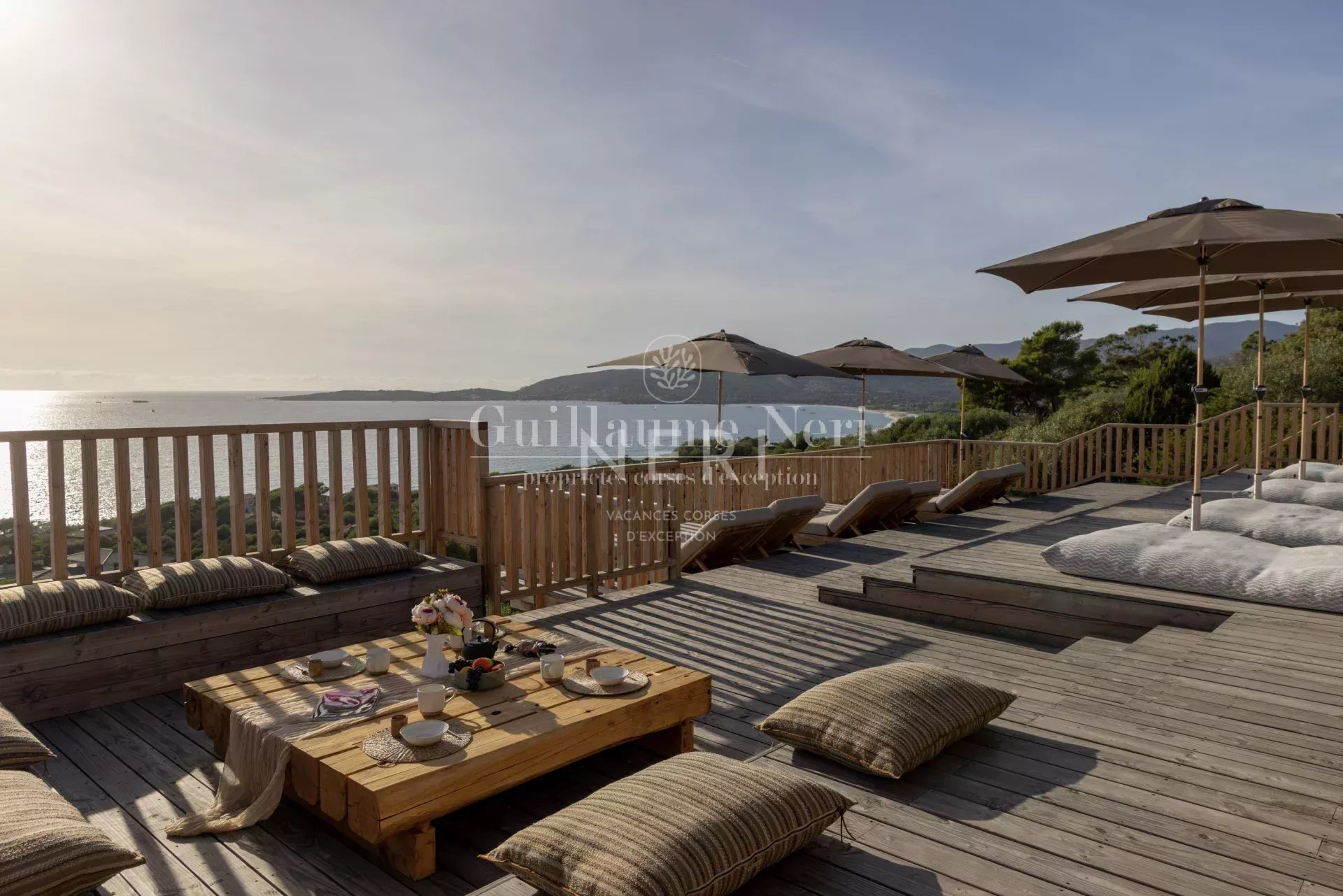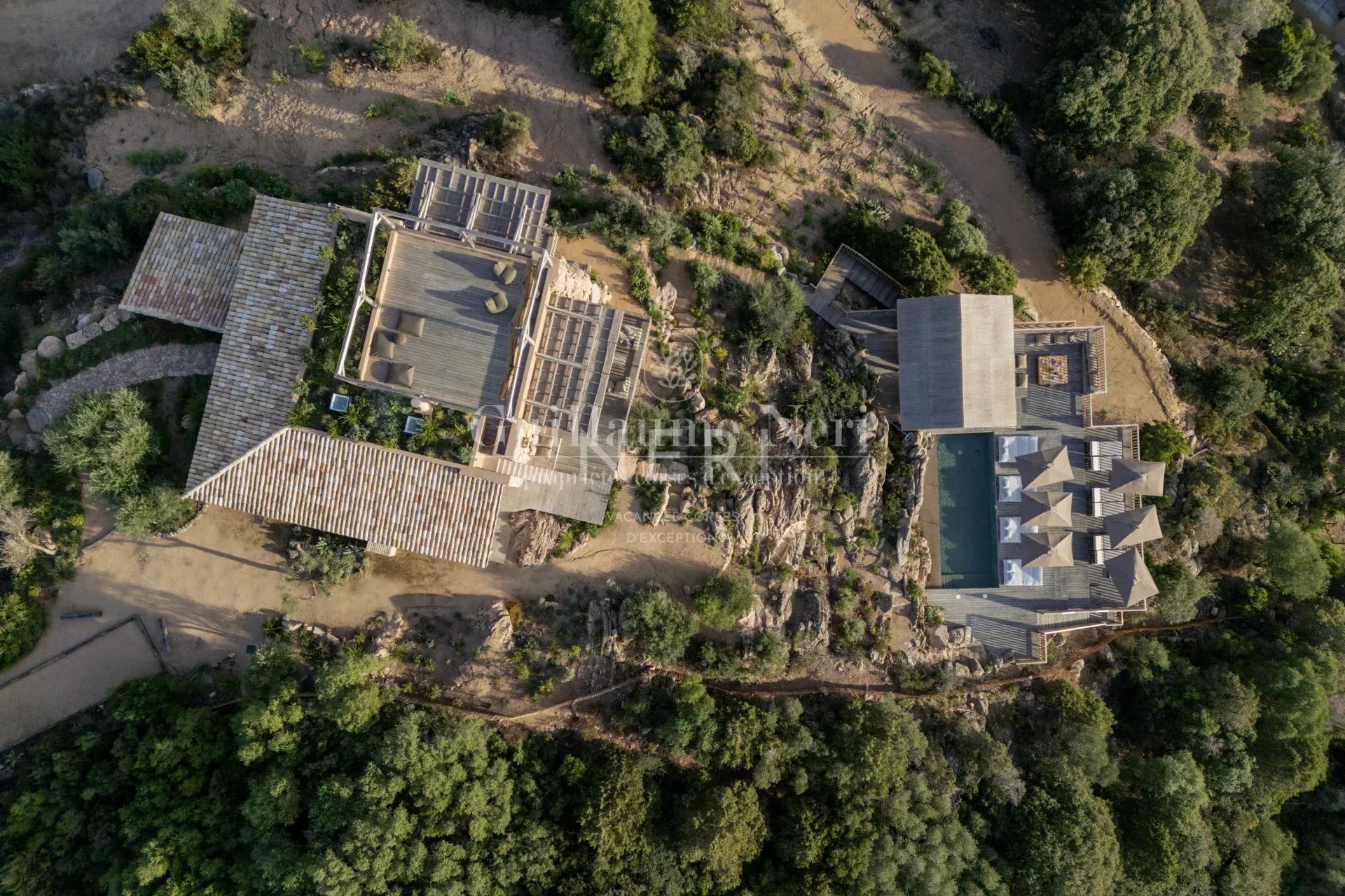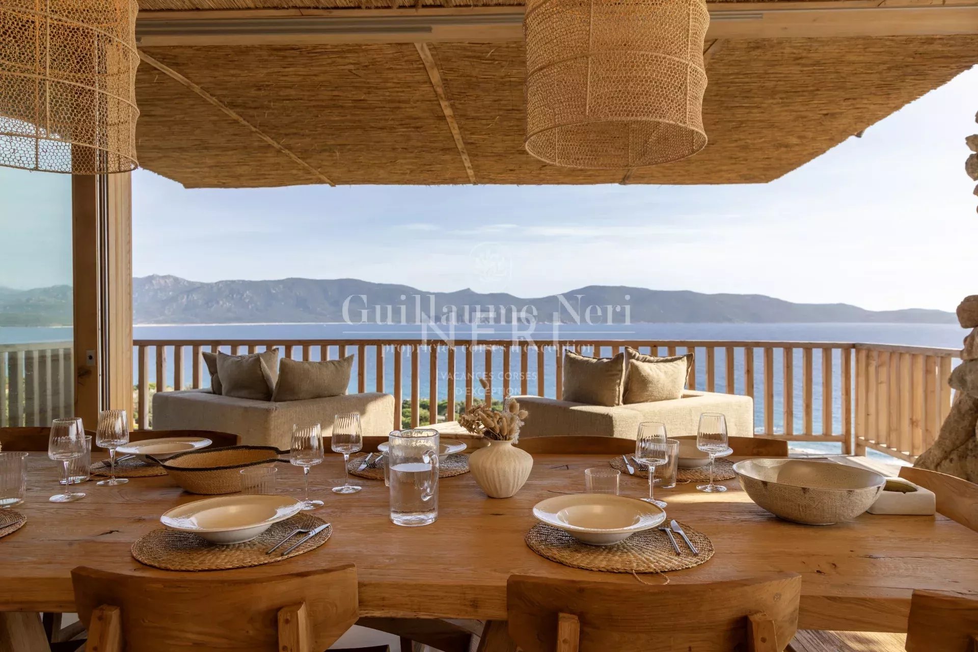 Perchée sur une collline, au cœur du Golfe du Valinco, cette villa d’exception offre une vue panoramique imprenable sur la mer, conjuguant luxe et nature