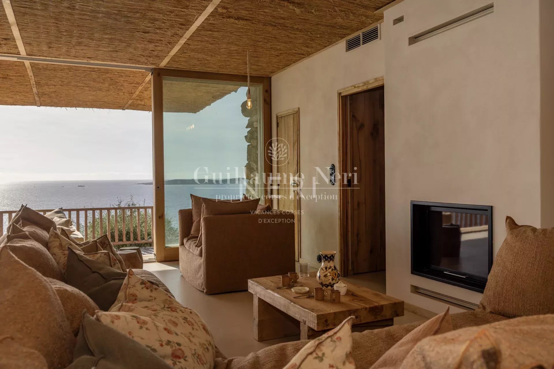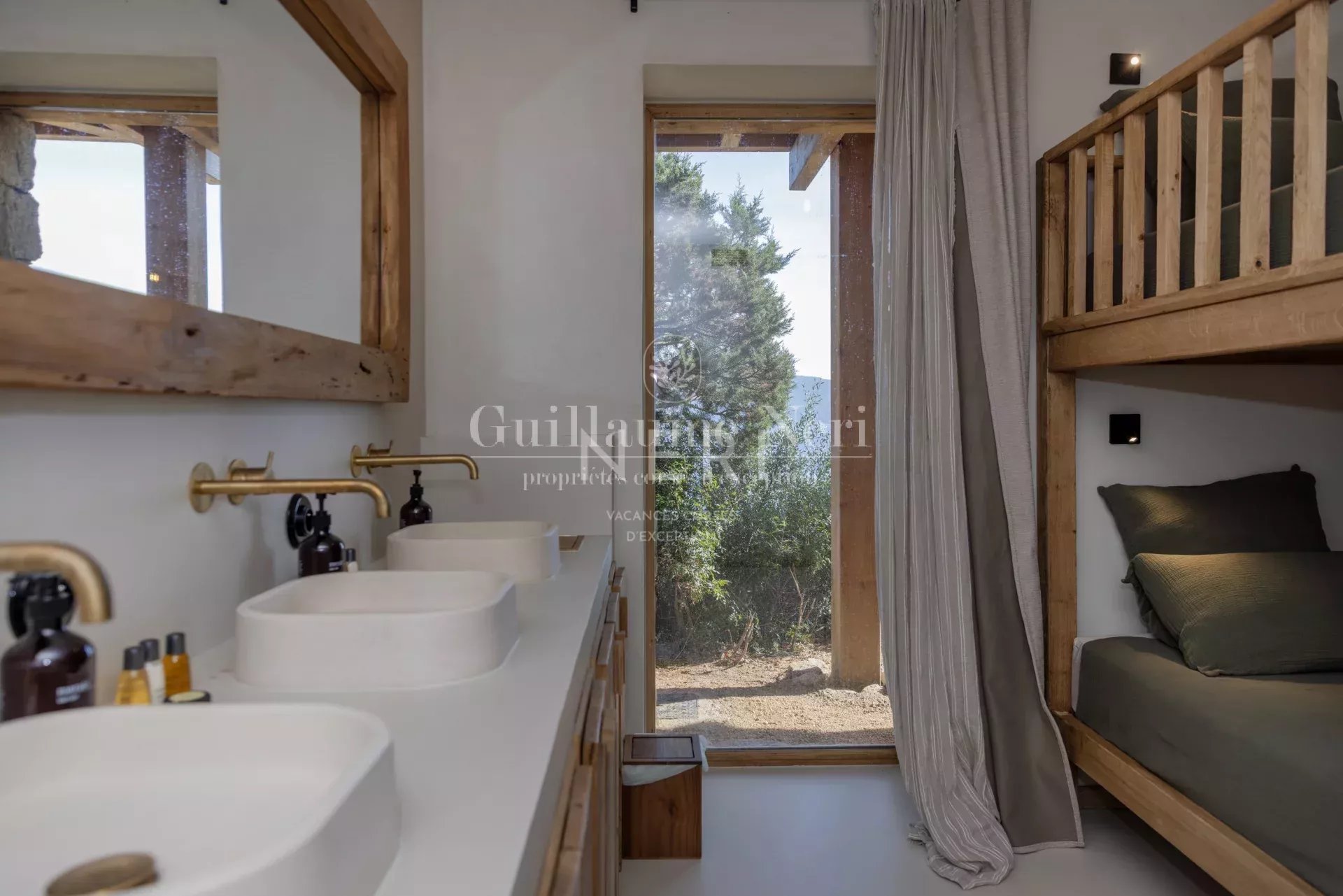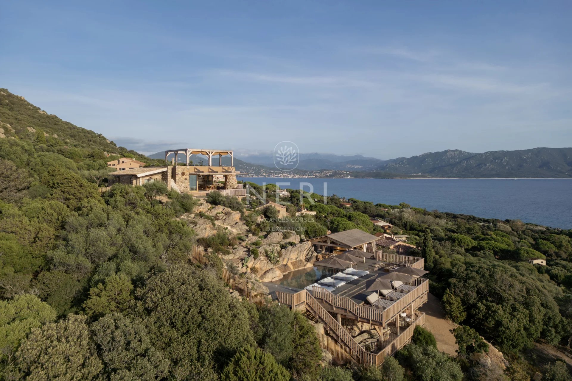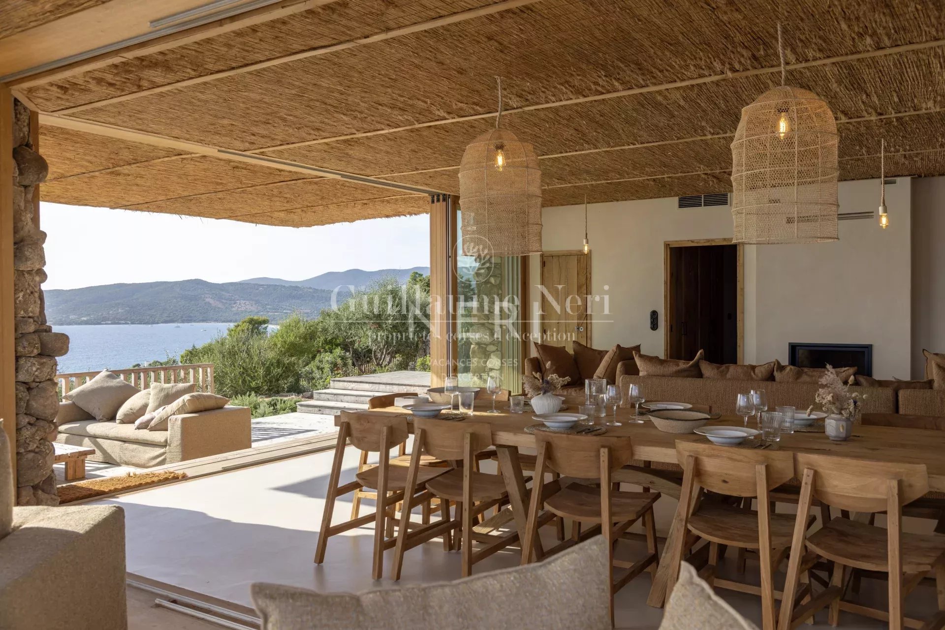 Perchée sur une collline, au cœur du Golfe du Valinco, cette villa d’exception offre une vue panoramique imprenable sur la mer, conjuguant luxe et nature
