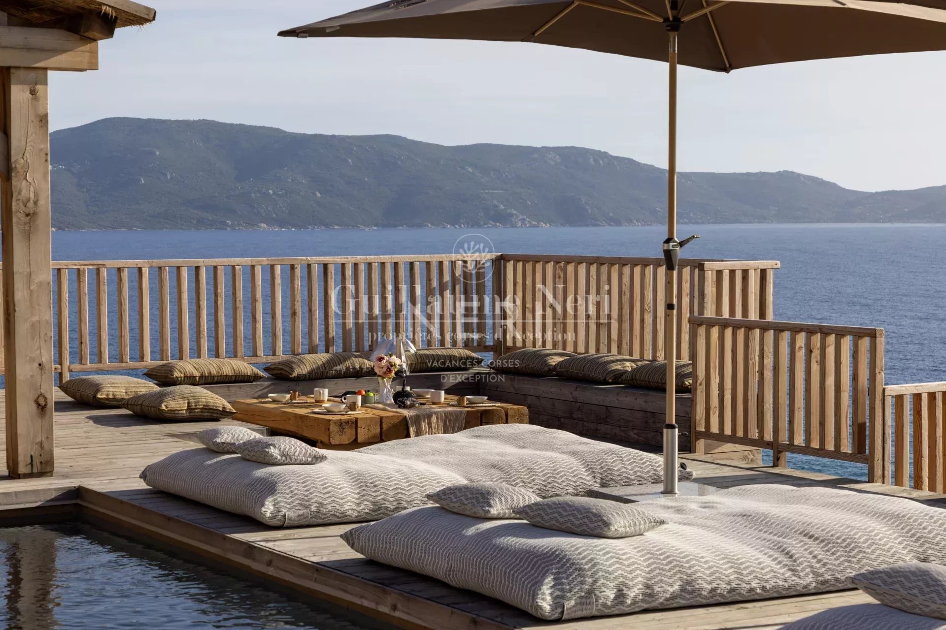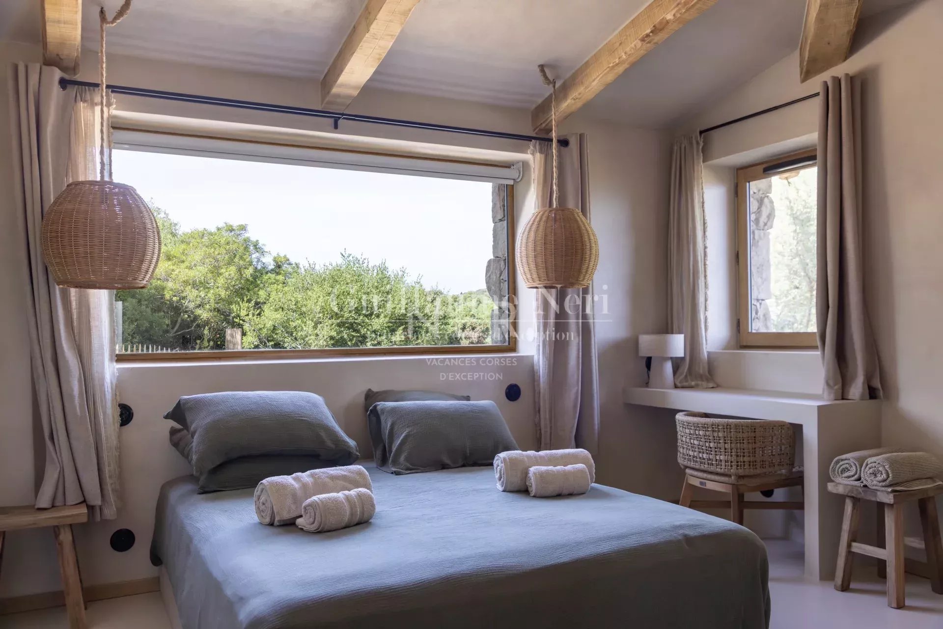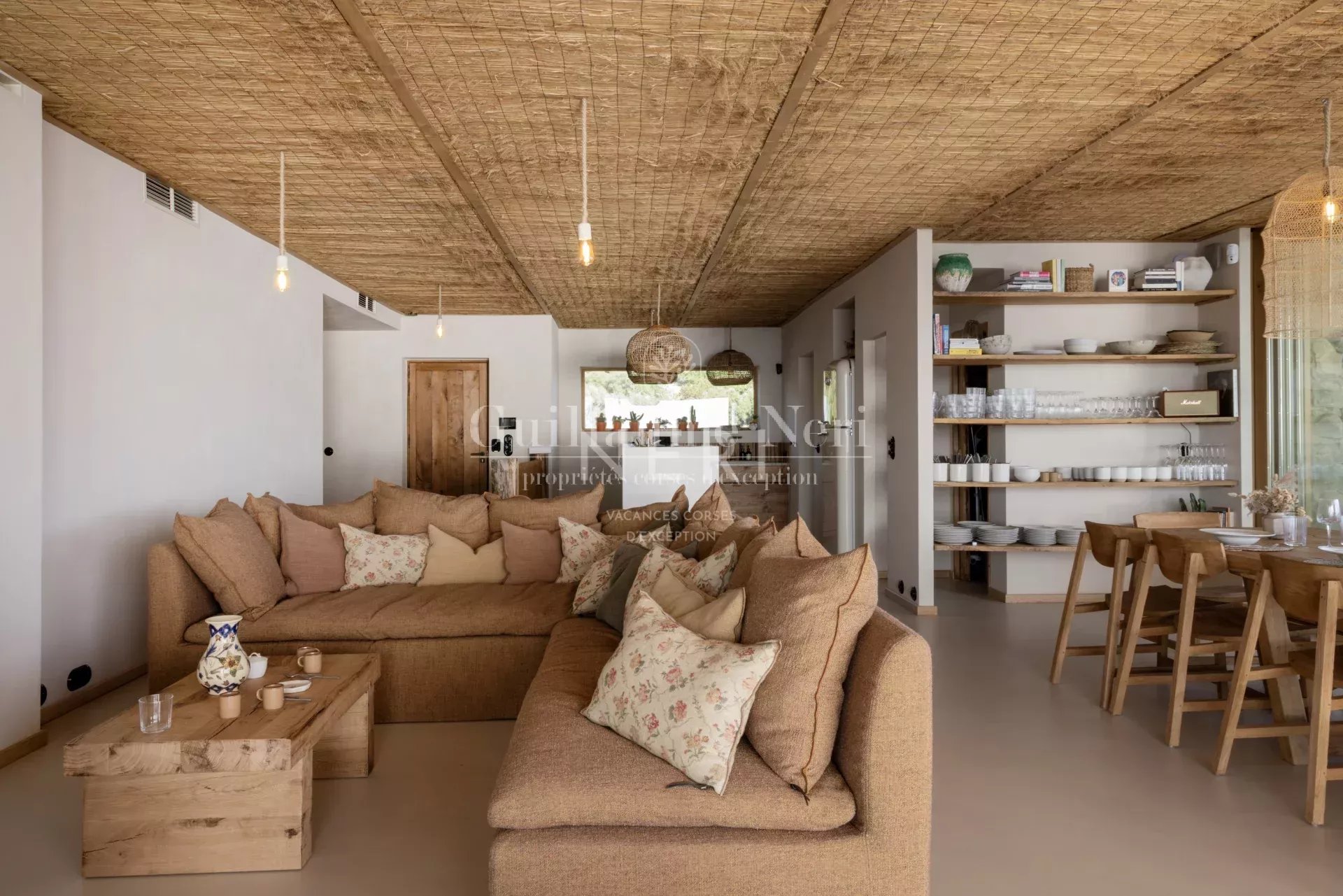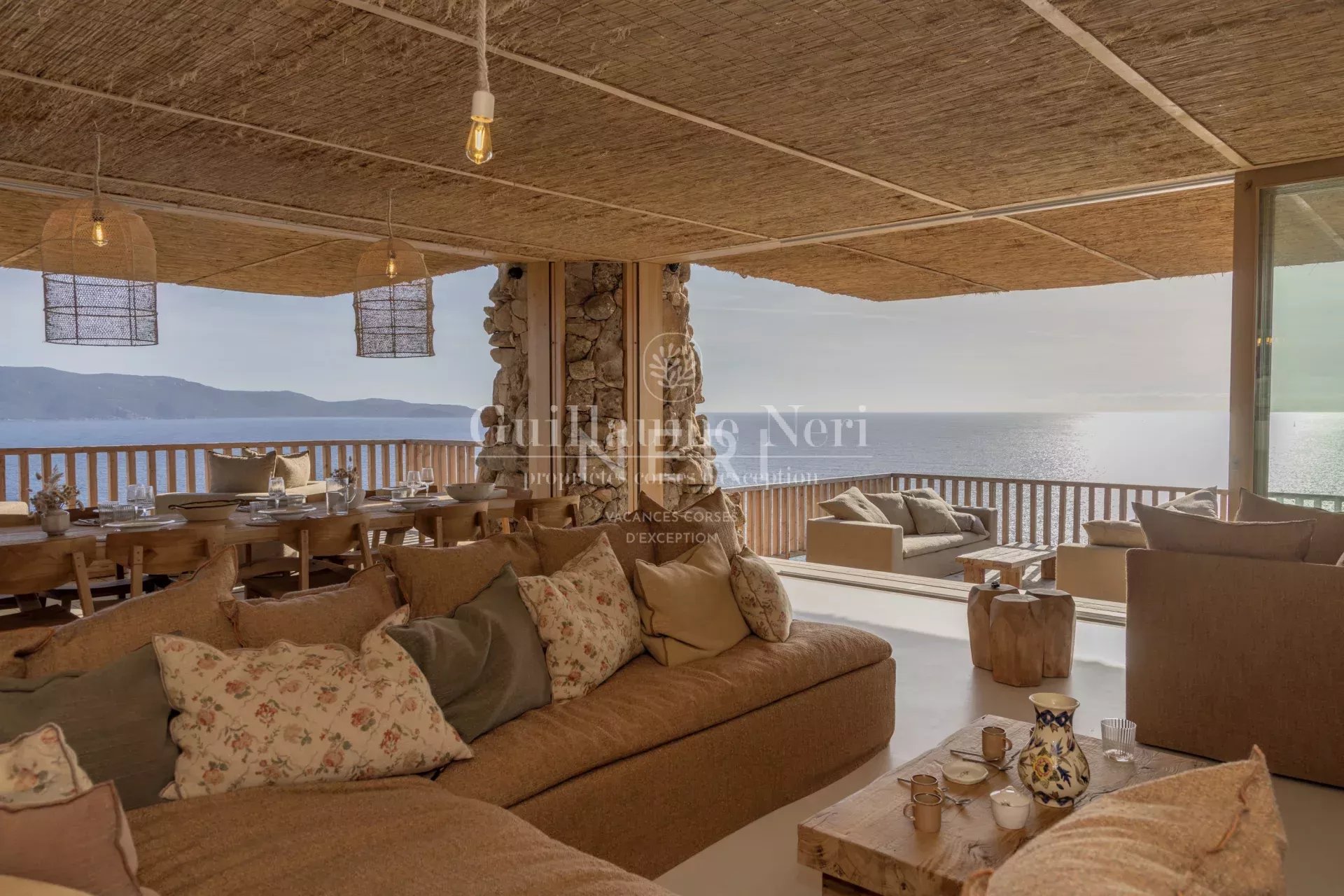 Perchée sur une collline, au cœur du Golfe du Valinco, cette villa d’exception offre une vue panoramique imprenable sur la mer, conjuguant luxe et nature
