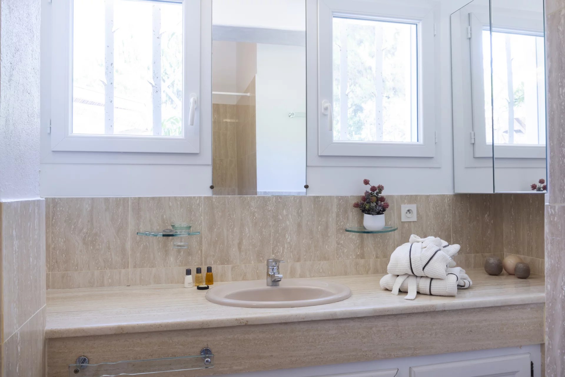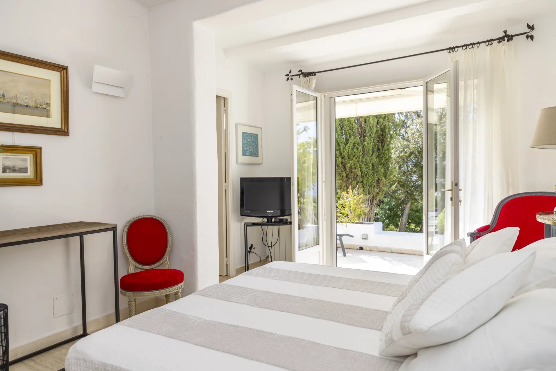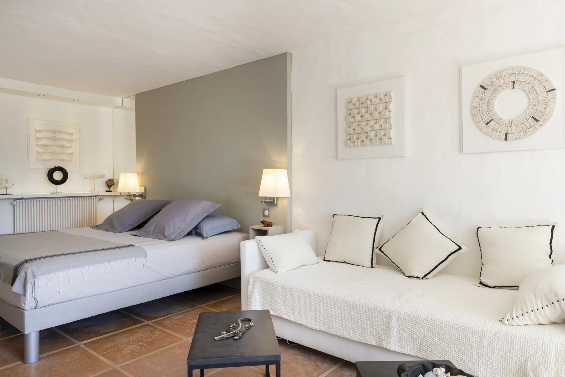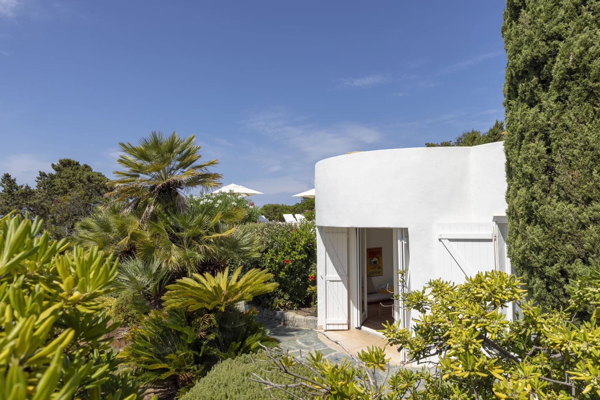 À l’extérieur, de vastes terrasses et espaces de détente surplombent la mer, la piscine et le jardin, offrant une vue imprenable et un cadre idéal pour des moments de sérénité.