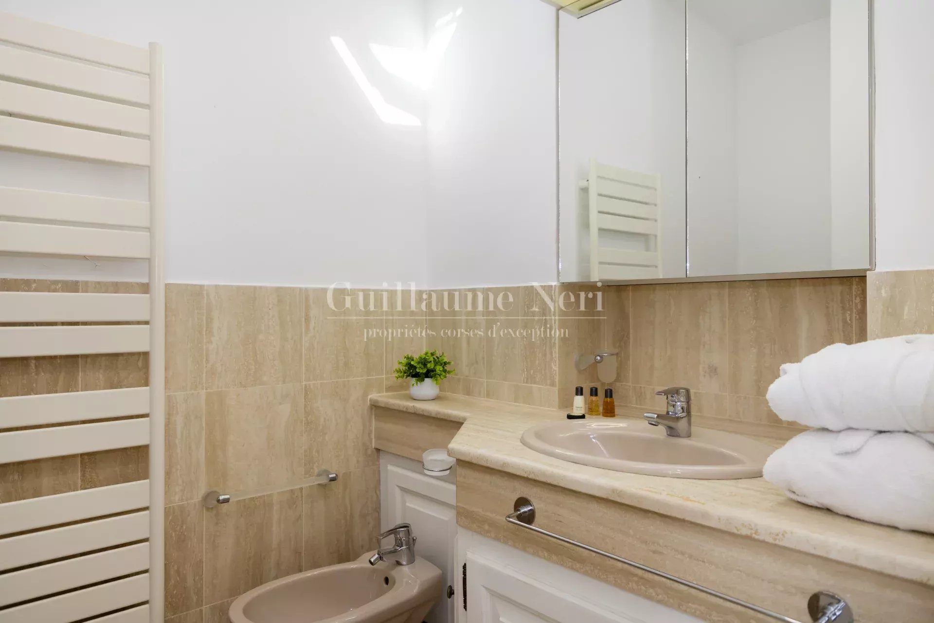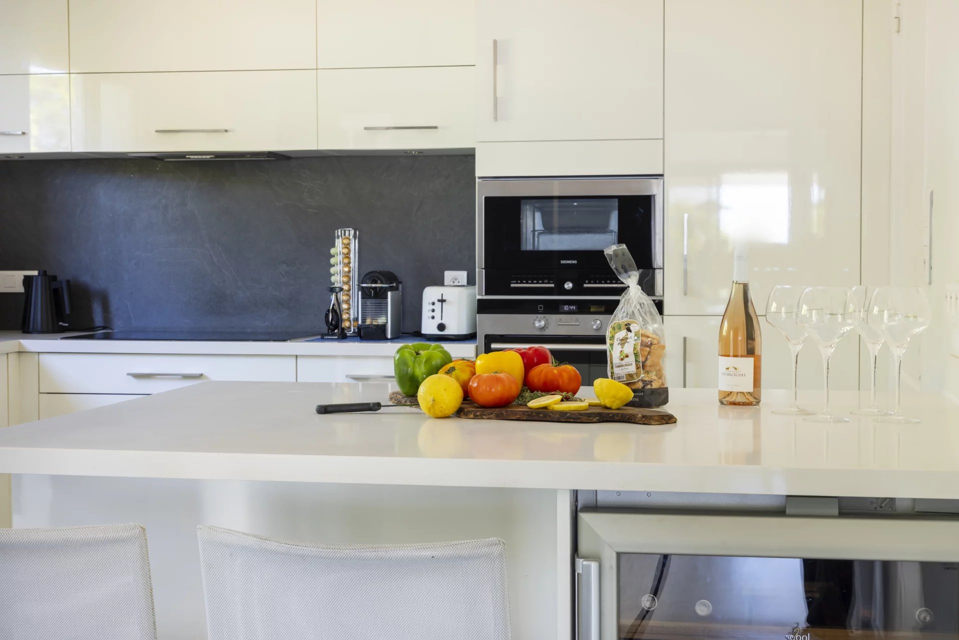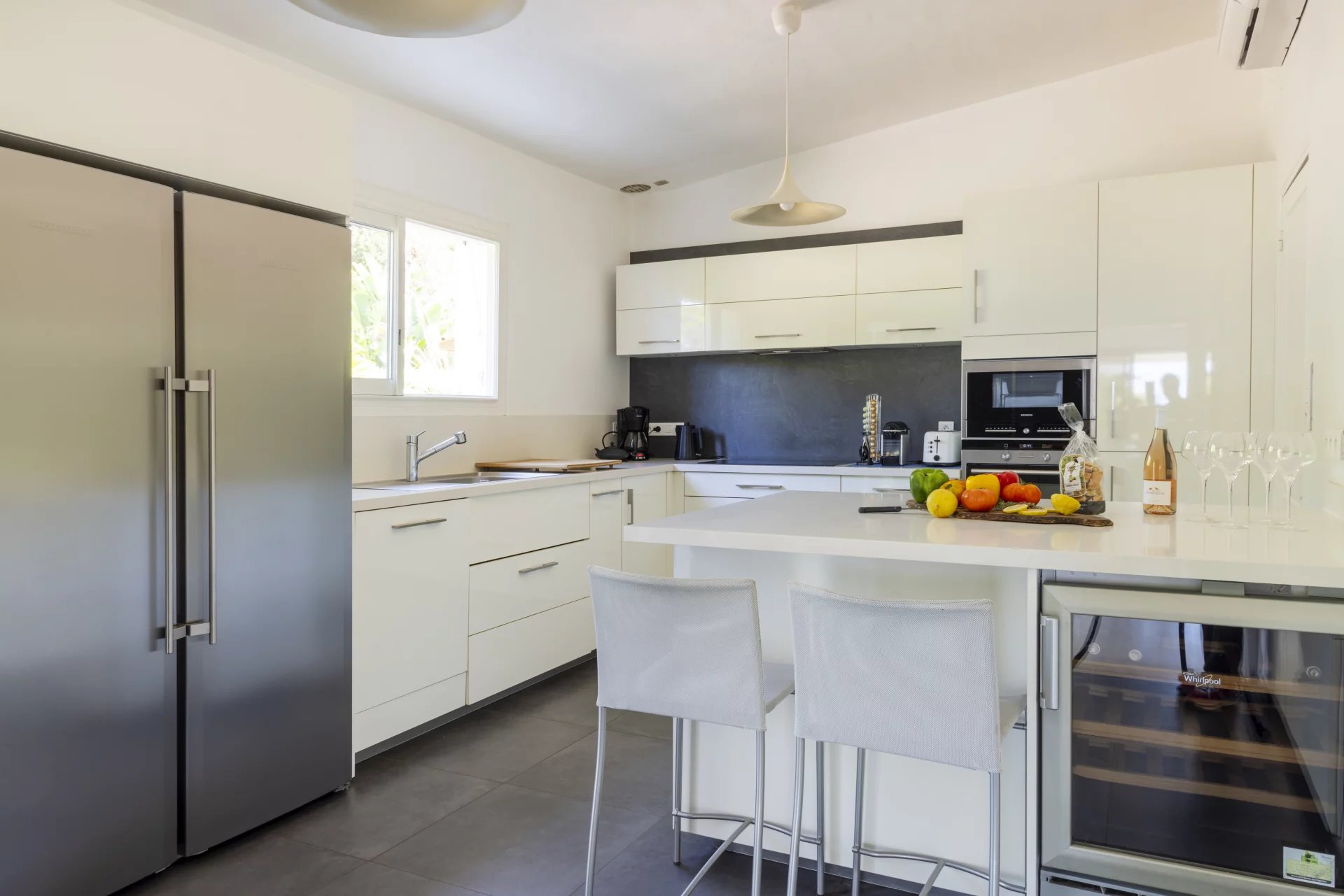 Son intérieur raffiné se compose d'un salon, d'une salle à manger et une cuisine moderne entièrement équipée. Côté nuit, 4 chambres, 4 salles de bains ainsi qu'une grande chambre indépendante, avec son propre coin salon et salle de douche.