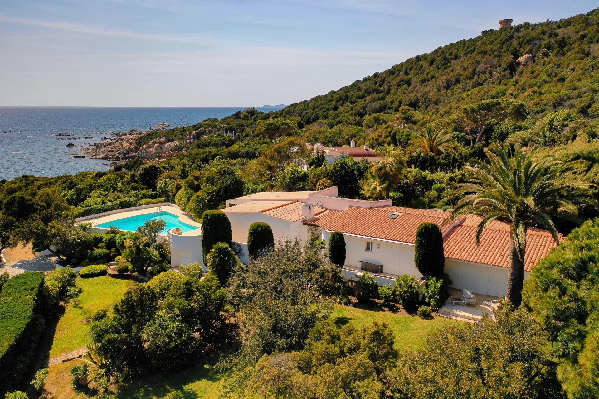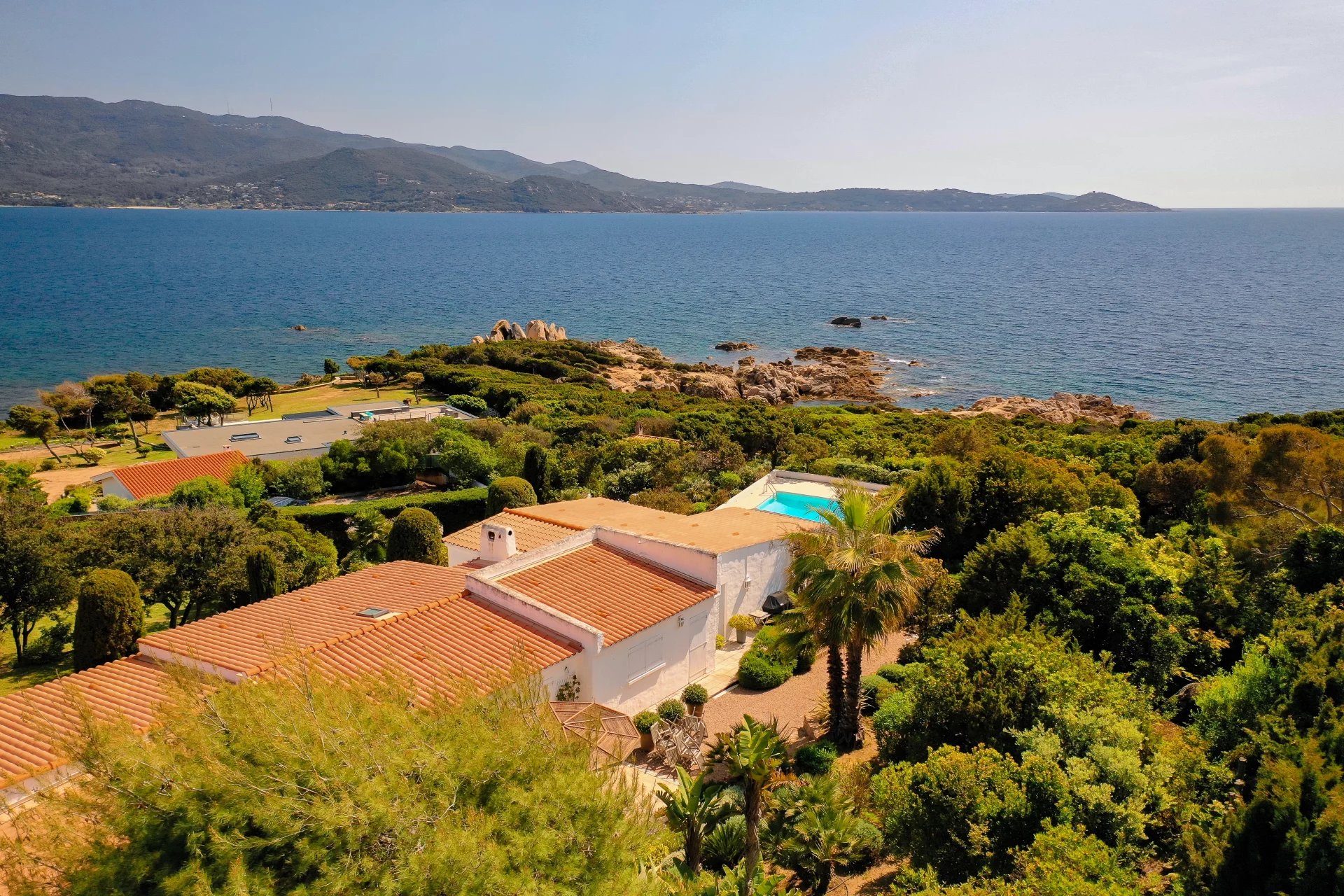 Idéalement située pour des vacances d'exception, cette vaste propriété pieds dans l’eau s’étend sur un magnifique parc méditerranéen de 6 000 m². Avec un accès direct à une crique de sable fin sur la presqu’île de l’Isolella, l’un des plus beaux sites de la rive sud d’Ajaccio, cette demeure offre un cadre unique.