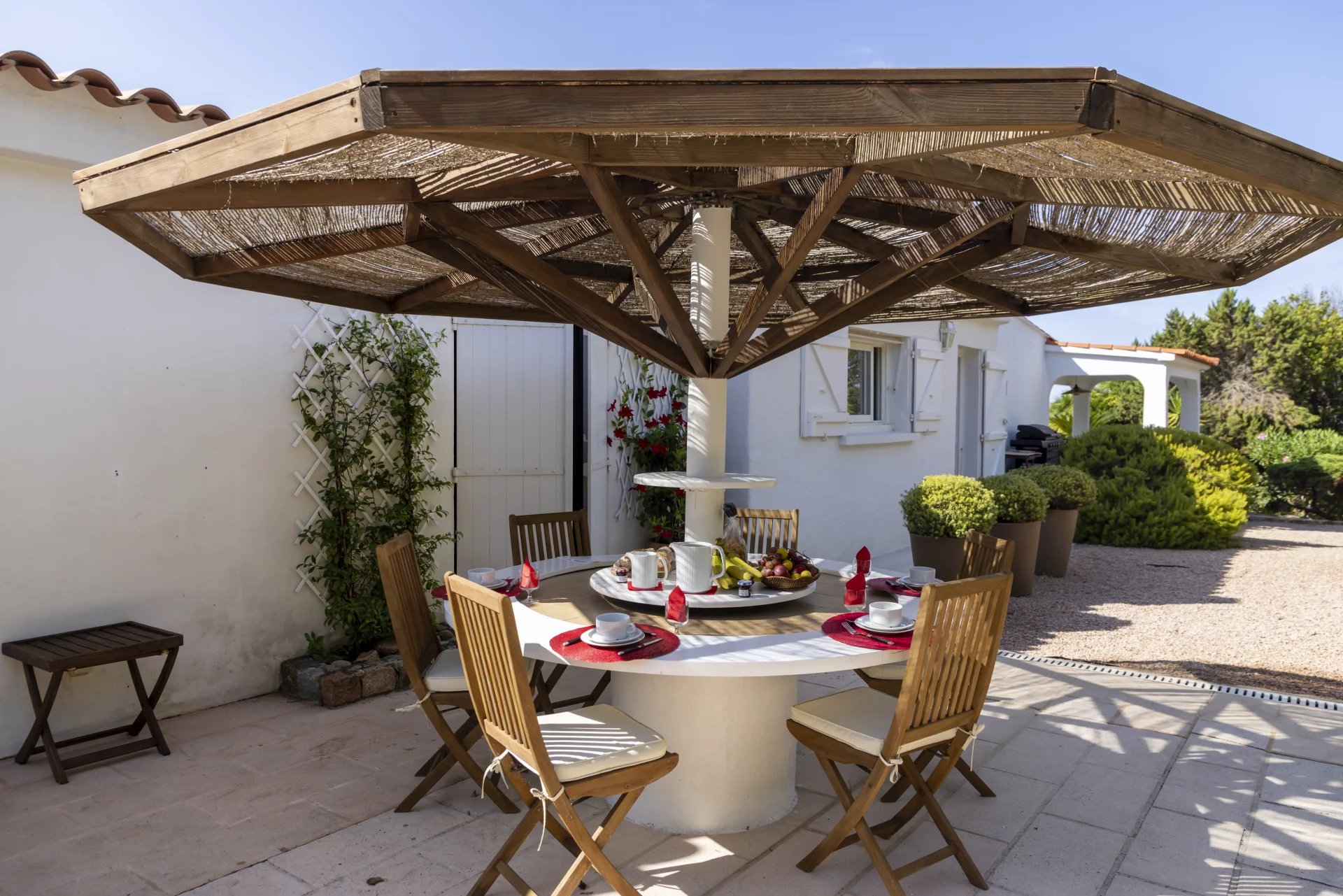 Un couple de gardien habite dans une maison présente sur le terrain ; ils sont chargés de l'entretien du jardin, des équipements techniques de la Villa et de son entretien intérieur