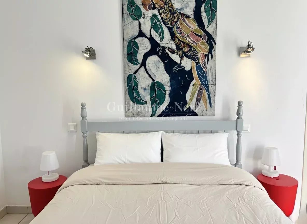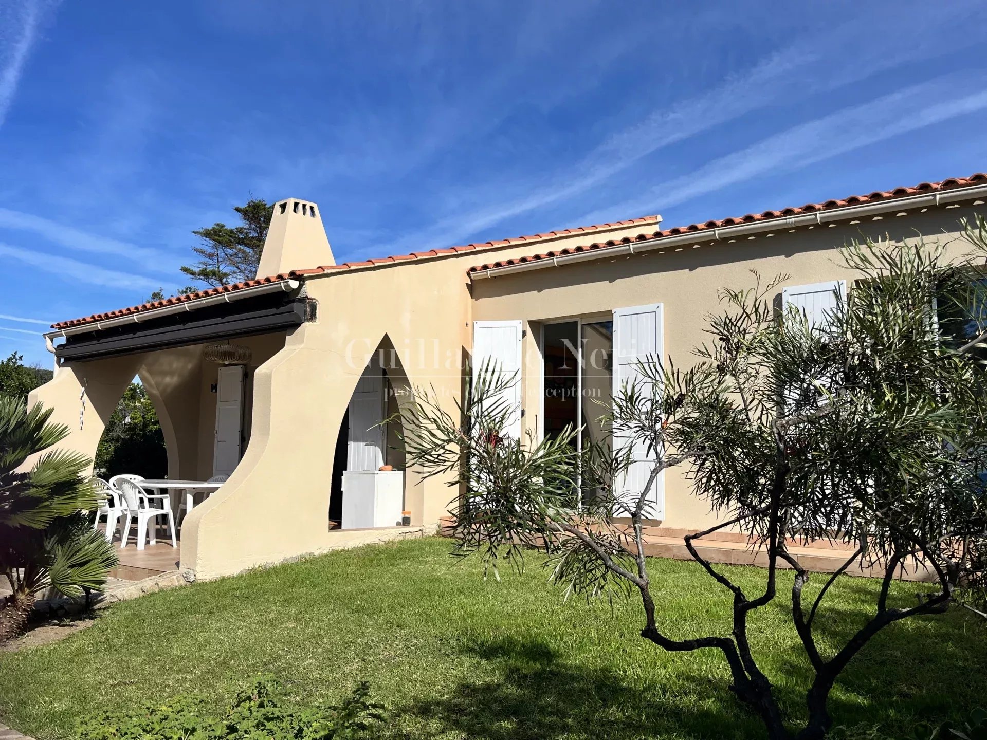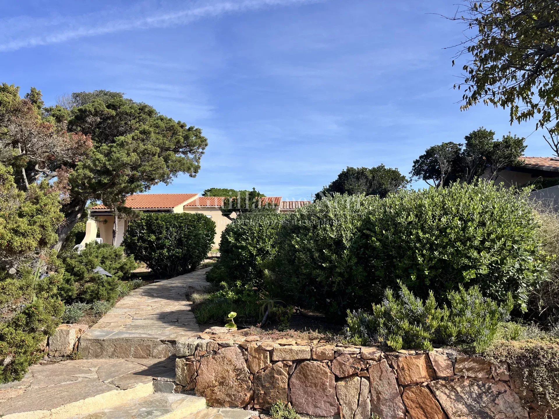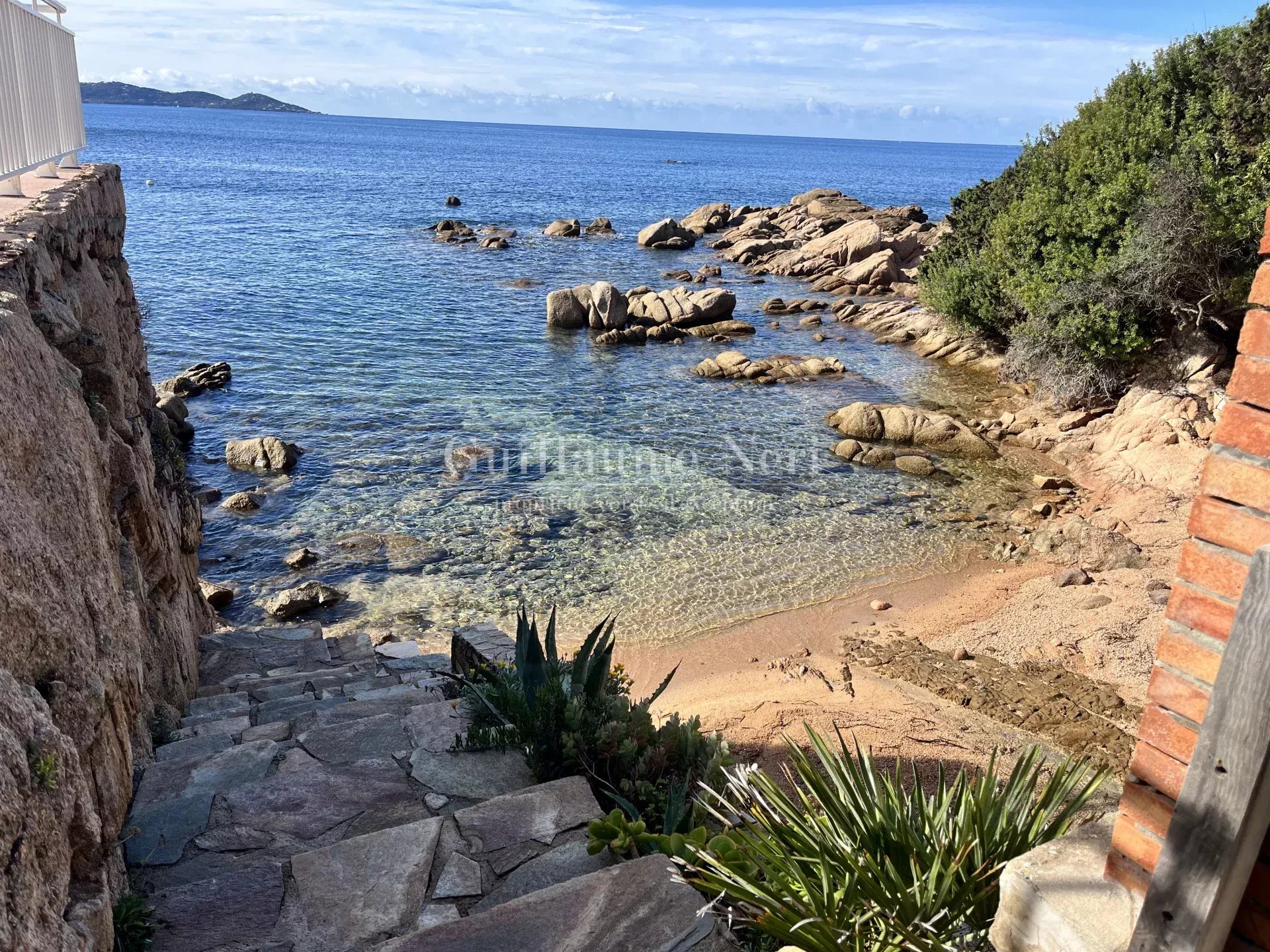 Nichée au cœur d’un jardin paysager de 2000 m² avec coin repas et table de ping-pong, elle offre un accès direct à une crique privée, ainsi que de vastes terrasses propices à la détente face à la mer.