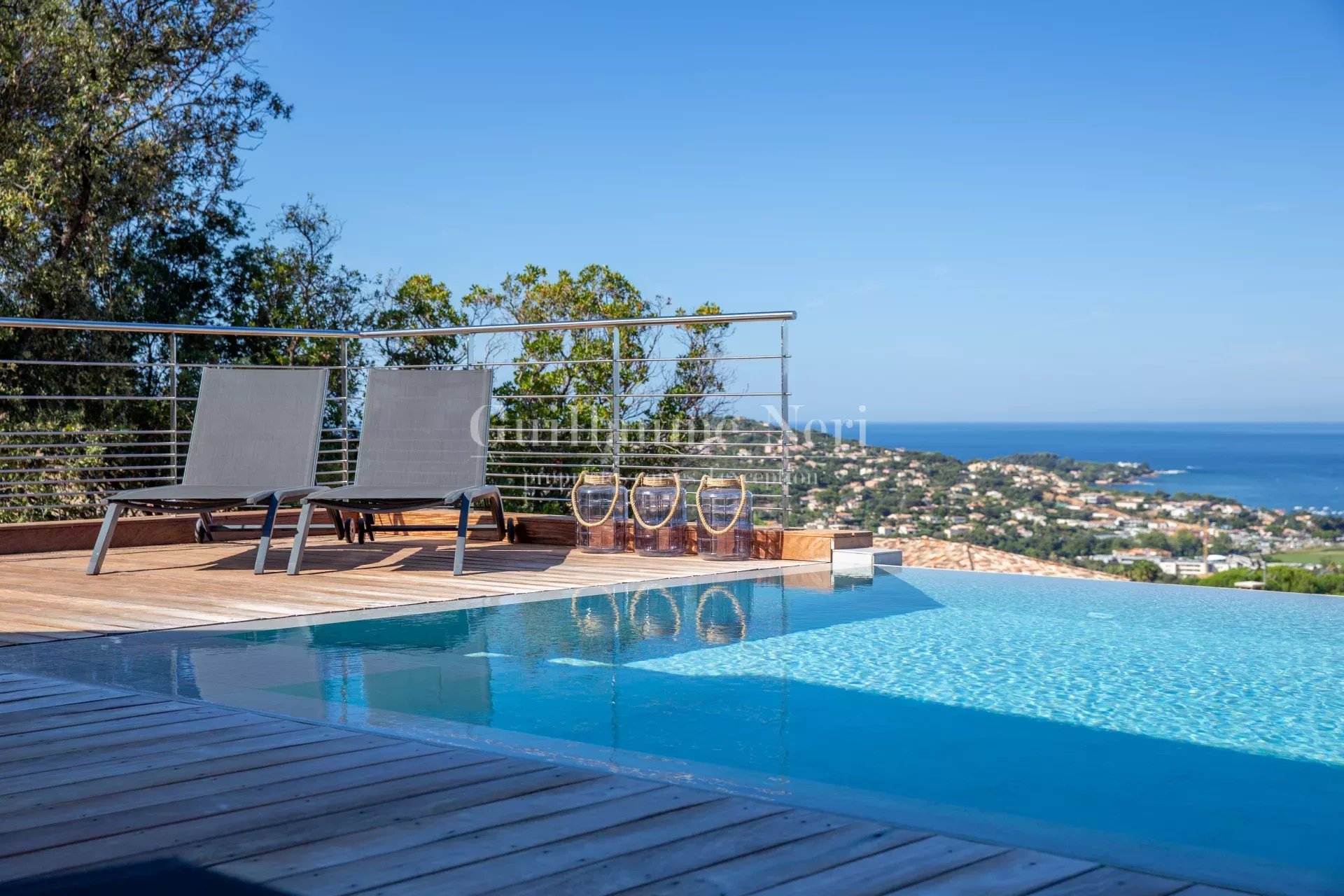 Répartie sur deux niveaux indépendants, elle peut accueillir jusqu'à 11 personnes. Vous profiterez d'une magnifique terrasse panoramique avec une vue imprenable sur l'ensemble du golfe d'Ajaccio.