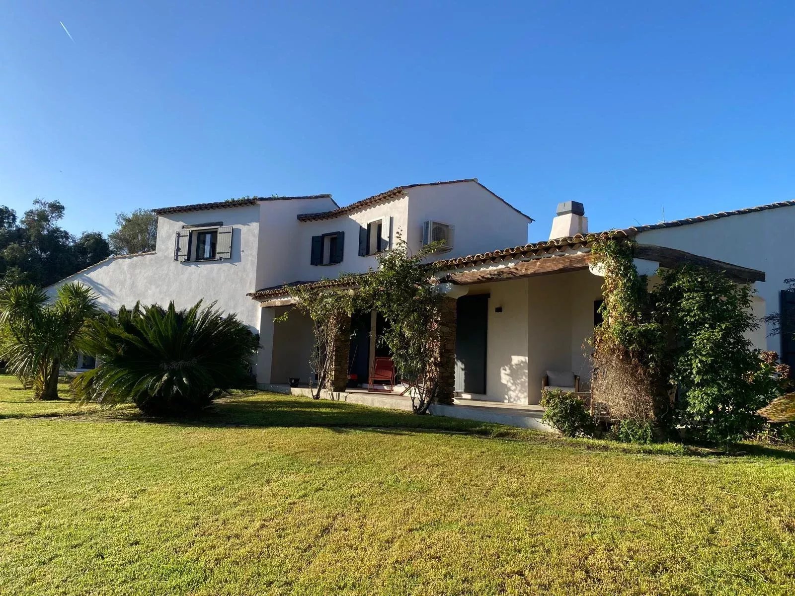 Le cœur de la villa est un vaste séjour-cuisine ouvert et convivial. La cuisine entièrement équipée, avec son îlot central, s’ouvre sur un espace repas. Le salon, chaleureux et lumineux, offre une vue dégagée sur les terrasses et le jardin.