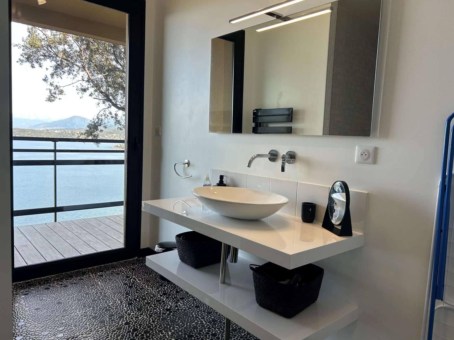 La piscine à débordement, suspendue comme par magie, dévoile une vue à 180 degrés sur l’horizon marin, créant un cadre exceptionnel pour des moments de pure détente.